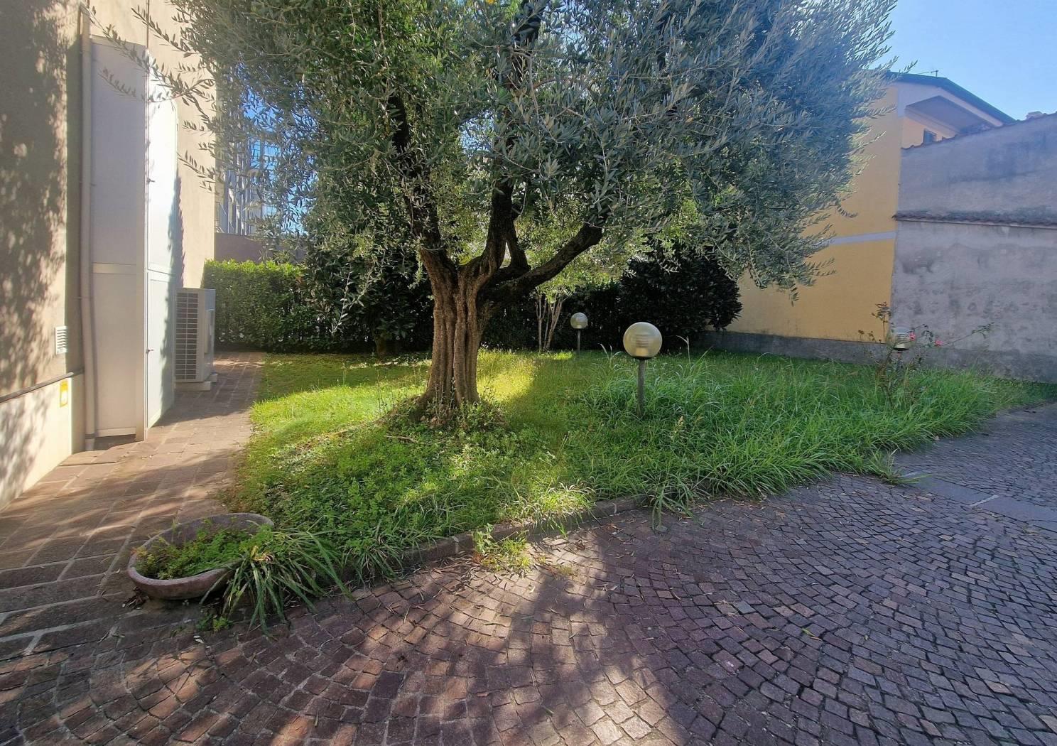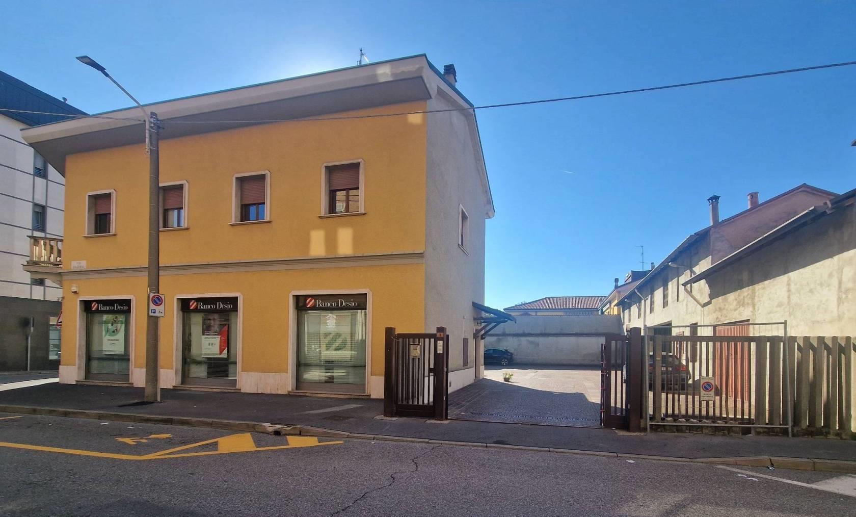 Il negozio al piano terra dispone di sei vetrine con ingresso su strada e ingresso secondario dal cortile interno. Attualmente è locato ad un istituto di credito con regolare contratto d'affitto commerciale.