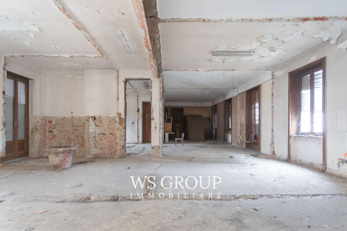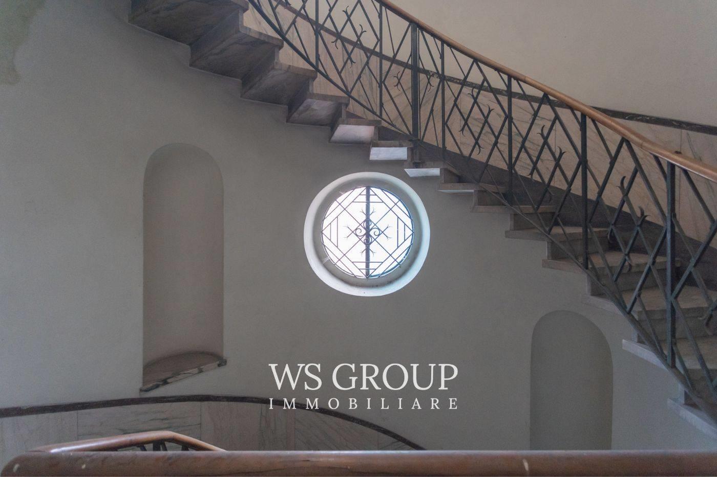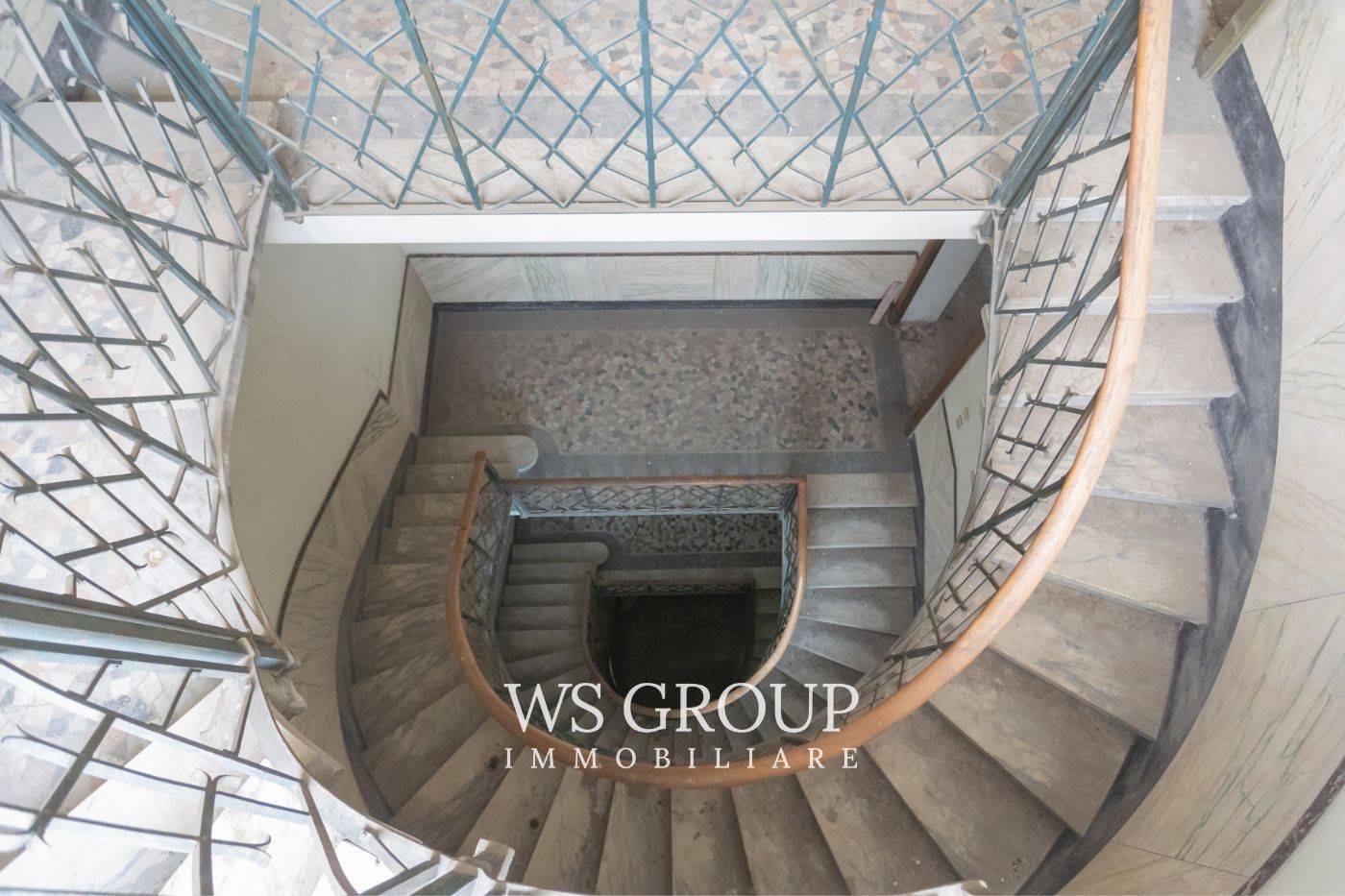 Questa soluzione è destinata ad operatori del settore edile ed immobiliare in quanto attualmente è allo stato di rustico, mentre il tetto è stato rifatto da pochi anni ed i piani sono collegati da una suggestiva scala con gradini in marmo; gli spazi delle parti comuni consentono di creare un ascensore. Al piano interrato troviamo una zona per realizzare le cantine, il primo piano è di 300mq ed offre due balconi sul lato strada, mentre il secondo piano di 265mq dispone di due ampi terrazzi sul lato interno dell’edificio; il sottotetto con travi a vista ha 18 finestre con apertura a bilico, è agibile ed ha una dimensione di c.a 160mq; la torretta che sormonta l’edificio, presenta ampie vetrate ed un’altezza del soffitto di 3,3m. A conclusione della proprietà, dall’ingresso da via Ballerini, disponiamo di 7 posti auto.