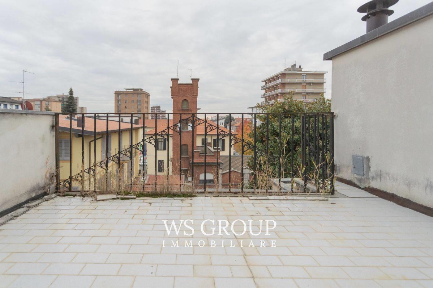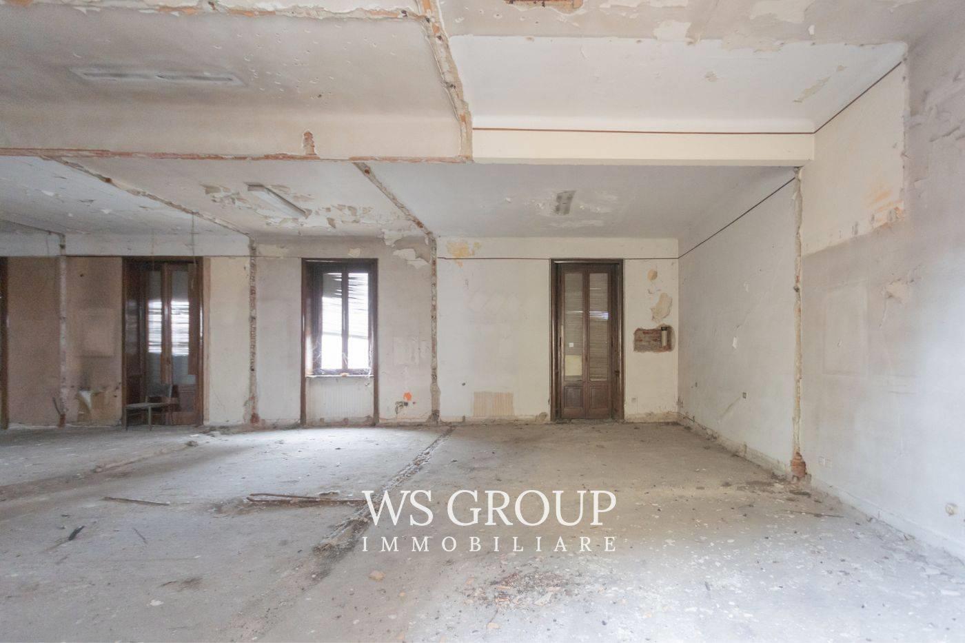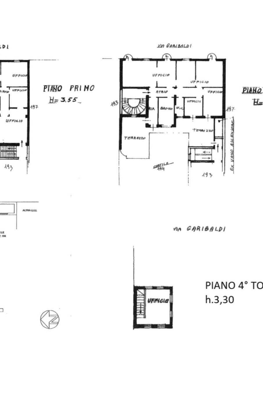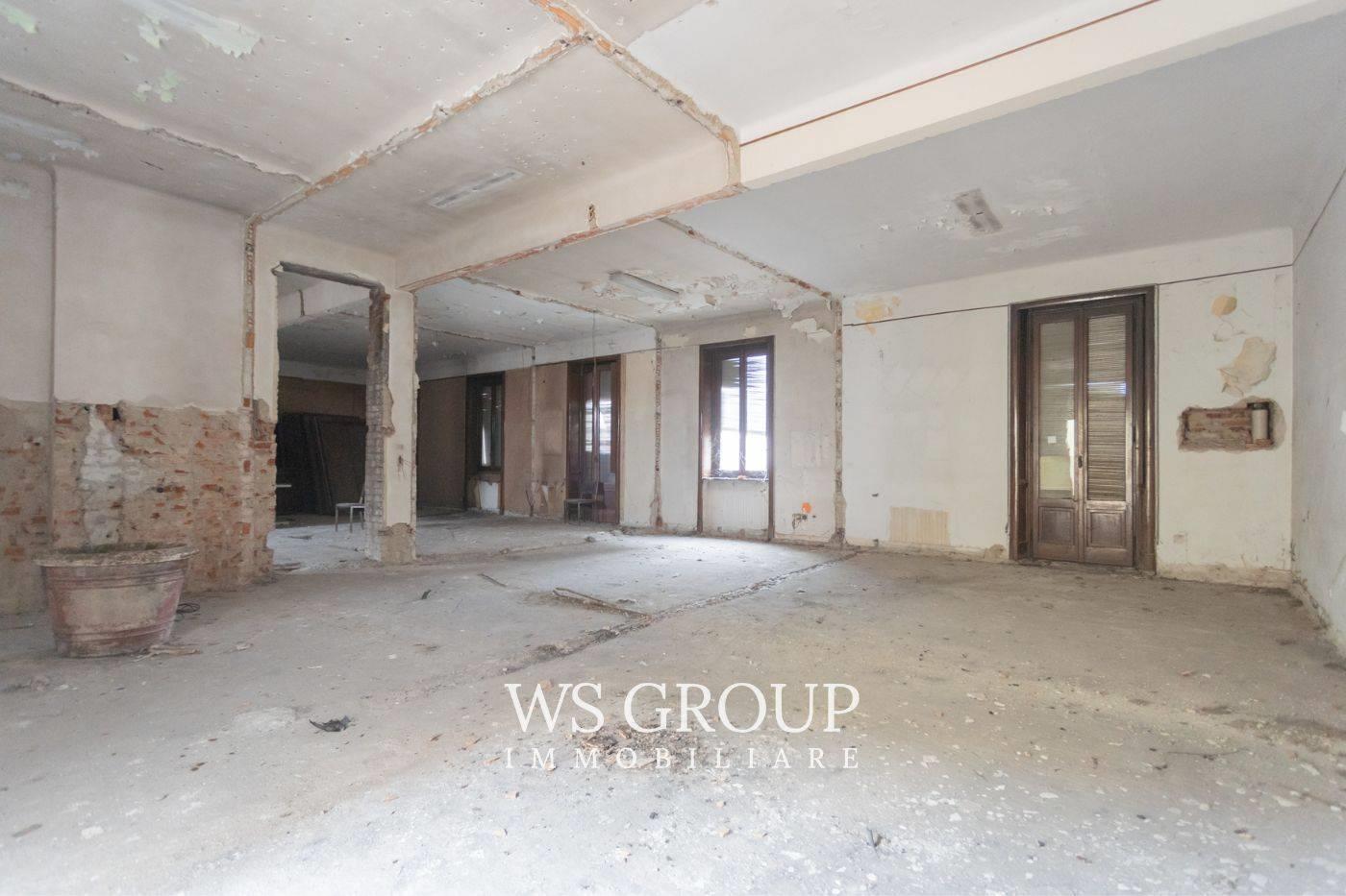 Questa soluzione è destinata ad operatori del settore edile ed immobiliare in quanto attualmente è allo stato di rustico, mentre il tetto è stato rifatto da pochi anni ed i piani sono collegati da una suggestiva scala con gradini in marmo; gli spazi delle parti comuni consentono di creare un ascensore. Al piano interrato troviamo una zona per realizzare le cantine, il primo piano è di 300mq ed offre due balconi sul lato strada, mentre il secondo piano di 265mq dispone di due ampi terrazzi sul lato interno dell’edificio; il sottotetto con travi a vista ha 18 finestre con apertura a bilico, è agibile ed ha una dimensione di c.a 160mq; la torretta che sormonta l’edificio, presenta ampie vetrate ed un’altezza del soffitto di 3,3m. A conclusione della proprietà, dall’ingresso da via Ballerini, disponiamo di 7 posti auto.