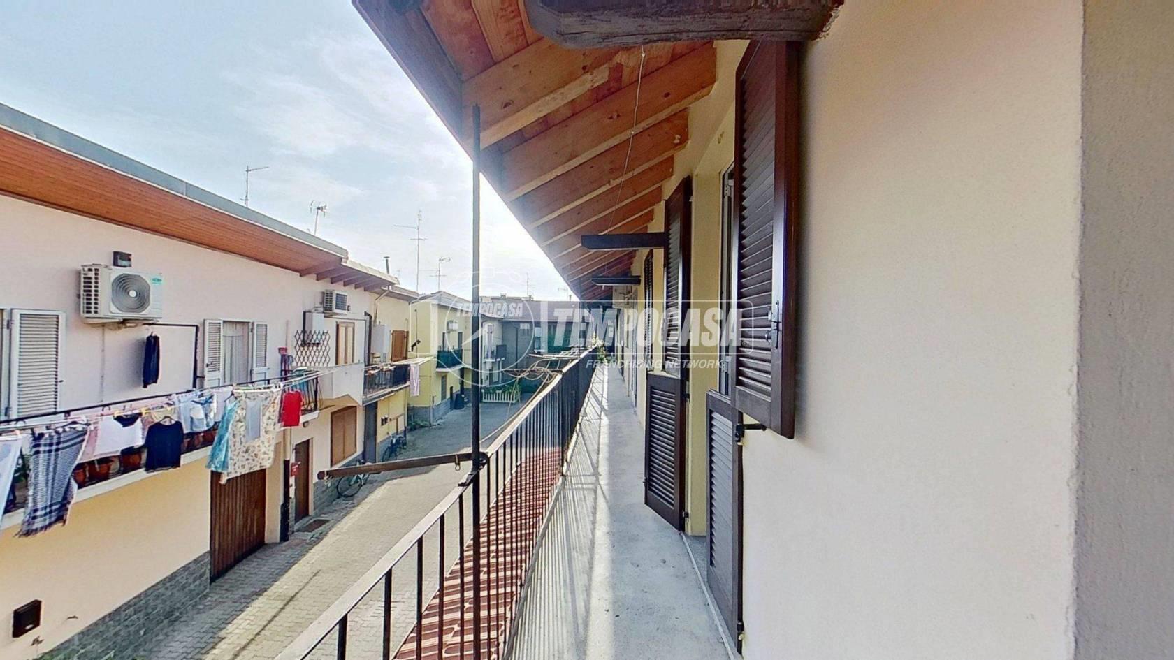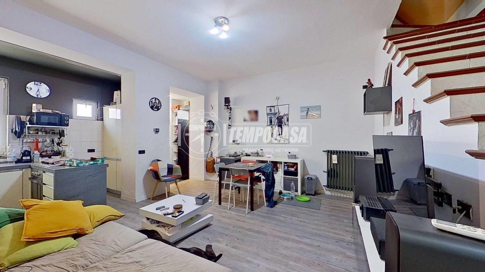 Rif: 01052 - All'interno di una caratteristica corte lombarda, immersa in un contesto tranquillo ma comodamente collegato alle principali arterie stradali e ai servizi di prima necessità, proponiamo in esclusiva un affascinante bilocale disposto su tre livelli, ideale per chi cerca una soluzione indipendente e dal sapore unico. Appena varcata la soglia, al piano terra, si viene accolti da una zona giorno luminosa e ben distribuita, dove il soggiorno si fonde armoniosamente con la cucina a vista, creando un ambiente caldo e conviviale. Un comodo ripostiglio, perfettamente integrato nella zona living, offre spazio utile per l’organizzazione della quotidianità. Salendo una raffinata scala in legno, si accede al piano superiore dove si apre la zona notte. La camera matrimoniale, confortevole e ben illuminata, gode di un accesso diretto al ballatoio comune, tipico delle corti di una volta. Adiacente alla camera si trova il bagno, moderno e funzionale, dotato di box doccia. Proseguendo il percorso verso l’alto, attraverso una scala a chiocciola, si giunge alla mansarda: uno spazio versatile, intimo e accogliente, perfetto per essere trasformato in studio, zona relax o hobby room, secondo le esigenze personali. Ristrutturato completamente nel 2016, l’immobile presenta infissi in alluminio con doppi vetri e impianto di climatizzazione con funzione caldo/freddo, assicurando comfort in ogni stagione. Le spese condominiali sono minime, un ulteriore punto di forza per chi desidera una soluzione abitativa economica ma di qualità.