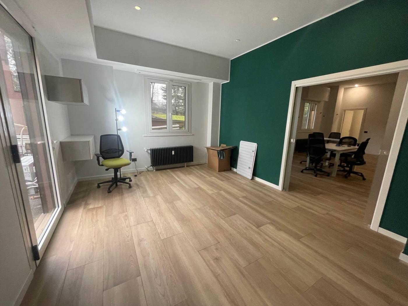 Monza via Amati fronte Policlinico, in zona comoda per le strade di collegamento, servita da mezzi di trasporto in condominio signorile ottimo ufficio ristrutturato, la soluzione si dispone su due livelli, al piano terra ingresso in locale open space con ulteriore ufficio direzionale con ingresso indipendente, servizio, al piano interrato collegato con scala interna e con ulteriore accesso indipendente troviamo un ufficio, un ampio locale attualmente adibito a cucina per eventuali conviviali pause lavoro, locale deposito e locale tecnico. Possibilità di parcheggiare un auto di fronte all'ingresso dell'ufficio direzionale.