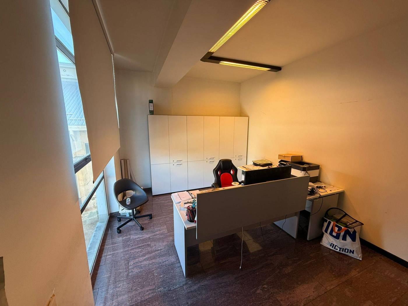 In posizione strategica, a pochi passi dal centro, proponiamo un ampio ufficio di 180 mq situato al primo piano di una palazzina ad uso uffici. L'immobile è composto da 4 locali spaziosi, oltre a servizi igienici. L'interno si presenta in ottime condizioni. Il riscaldamento è centralizzato. Completano la proprietà due posti auto.