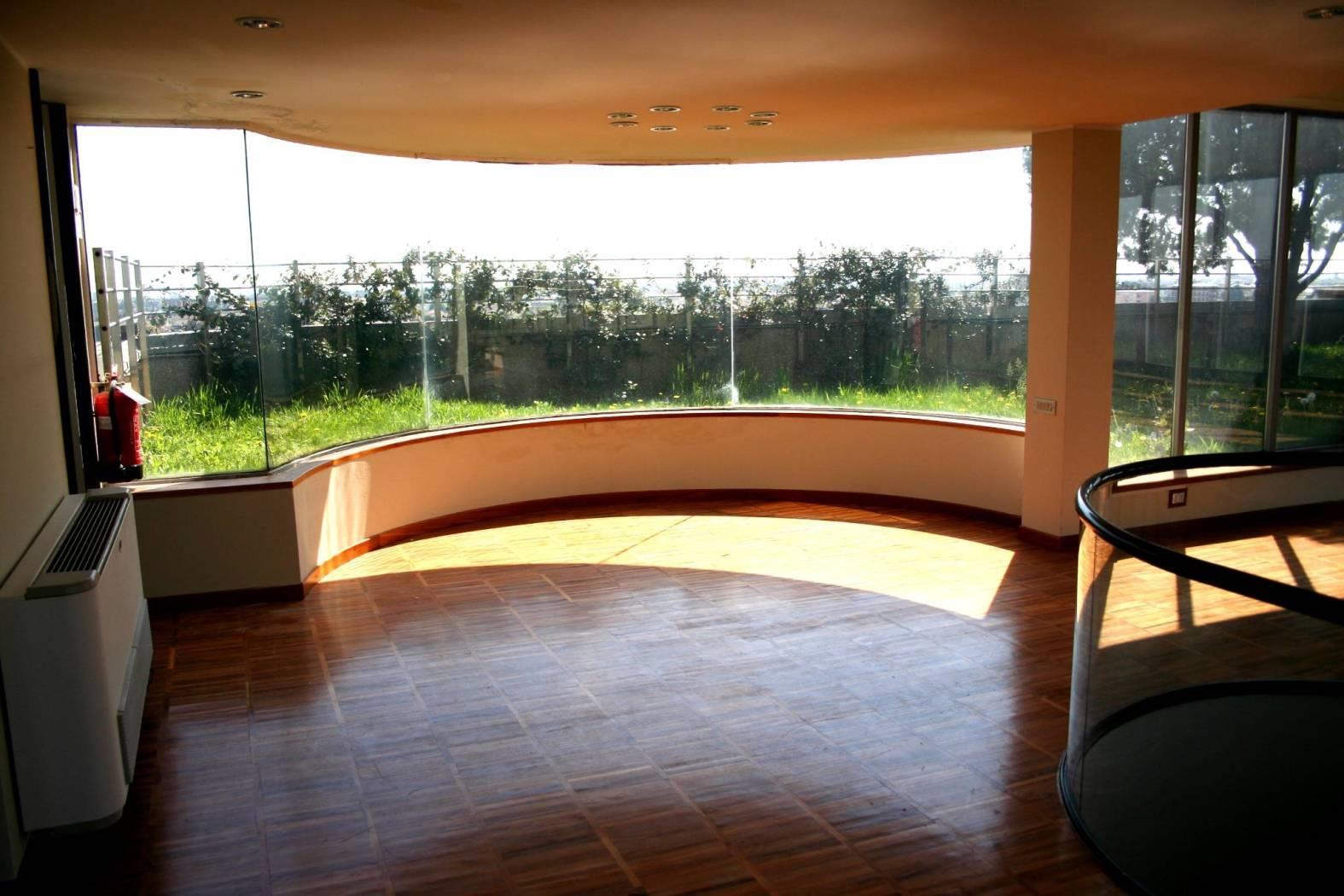 Situato all’ultimo piano di un edificio moderno, offre ambienti spaziosi e luminosi, collegato ad un attico panoramico con vista a 360° sulla città.