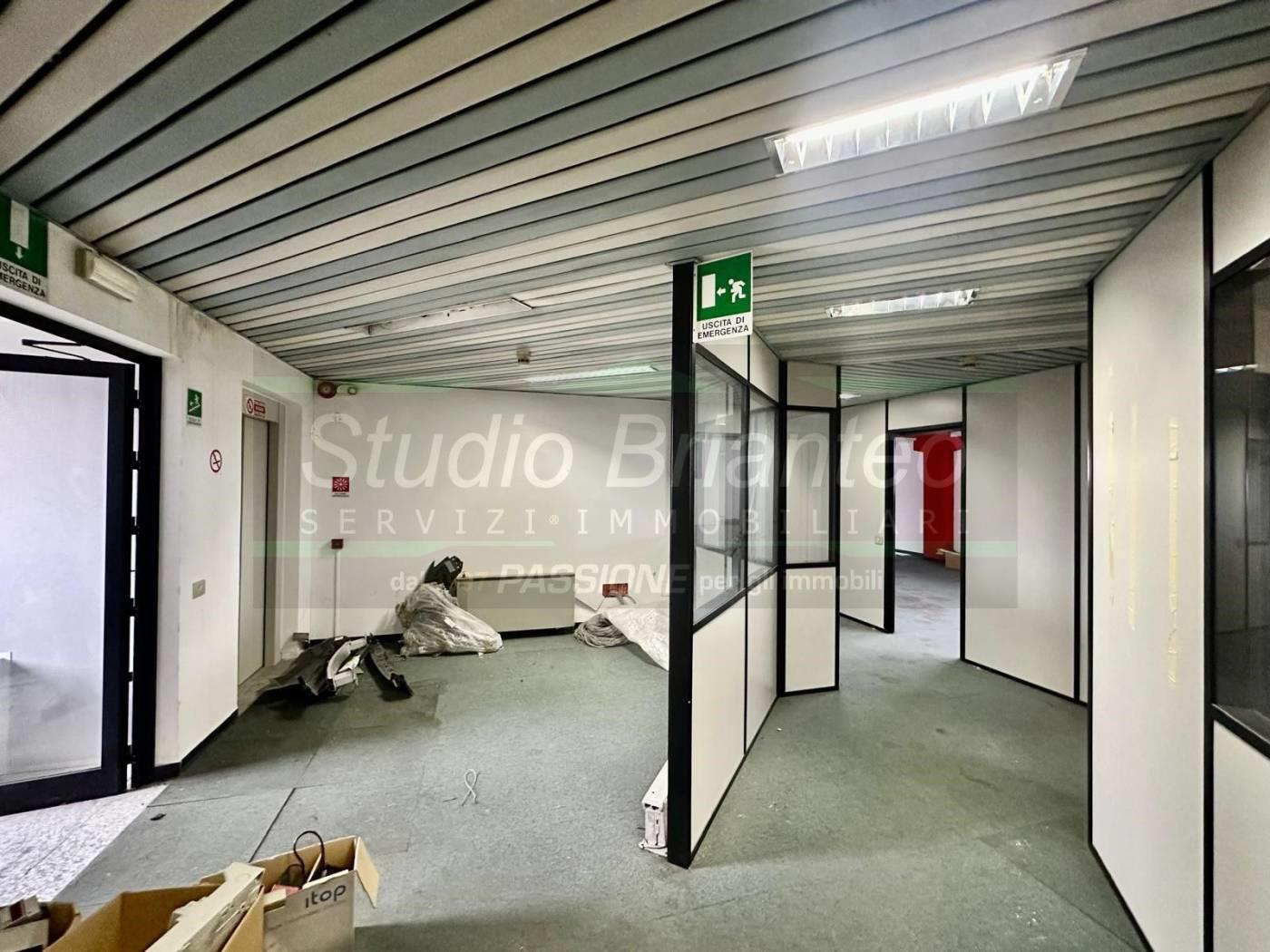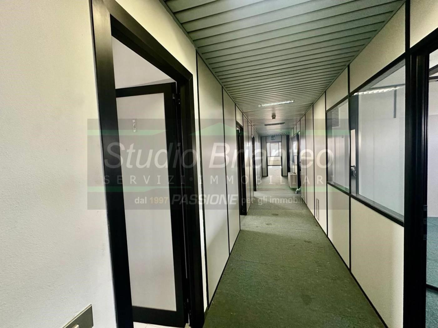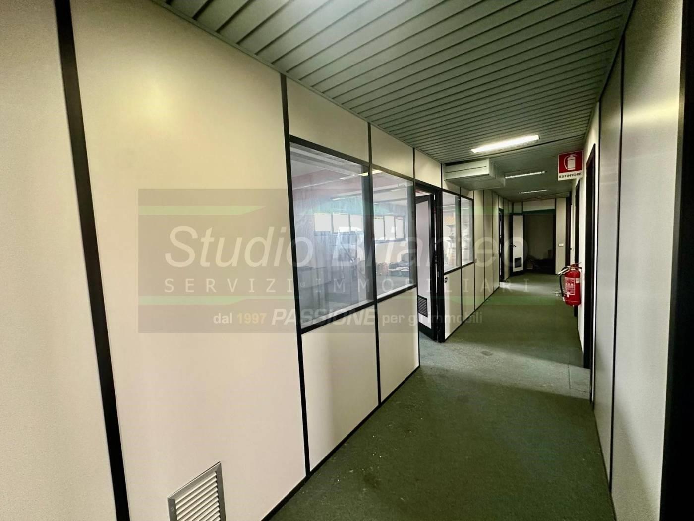 l'immobile si trova al piano primo (con uso esclusivo dell'ascensore) ed è al momento suddiviso, con pareti rimovibili, in sette locali più tre bagni, disimpegno d'ingresso con sbarco ascensore e un locale ad uso ripostiglio;