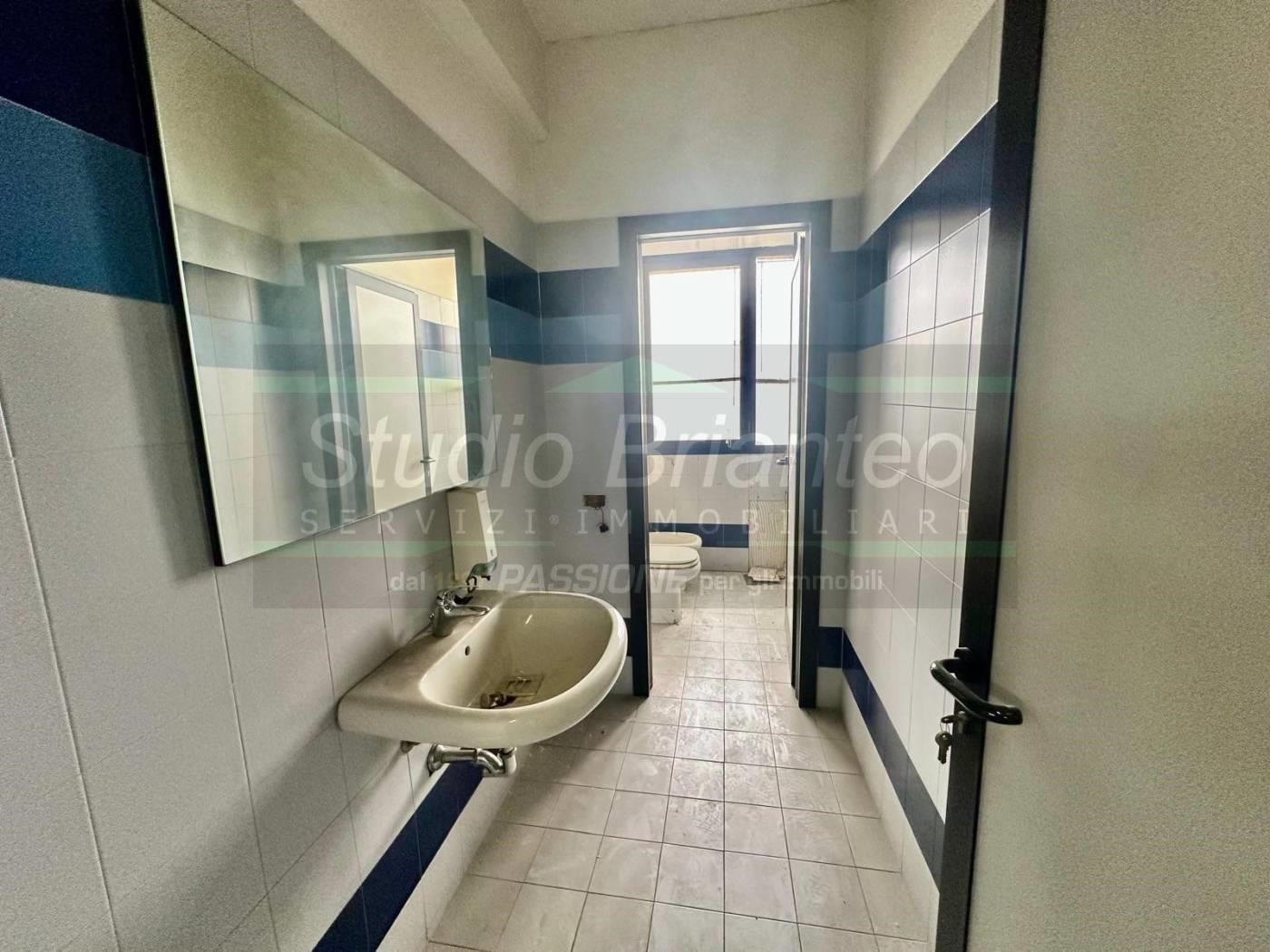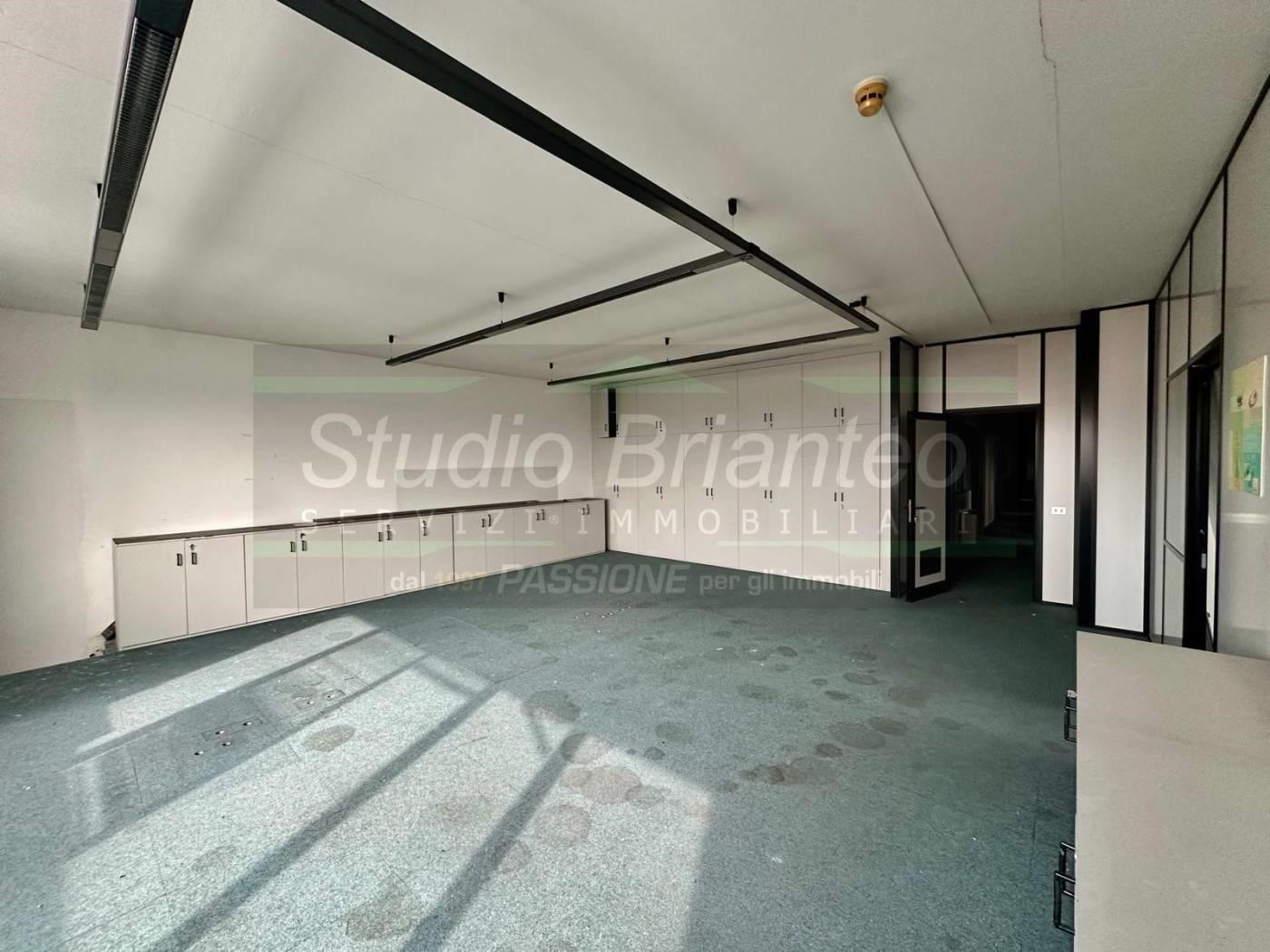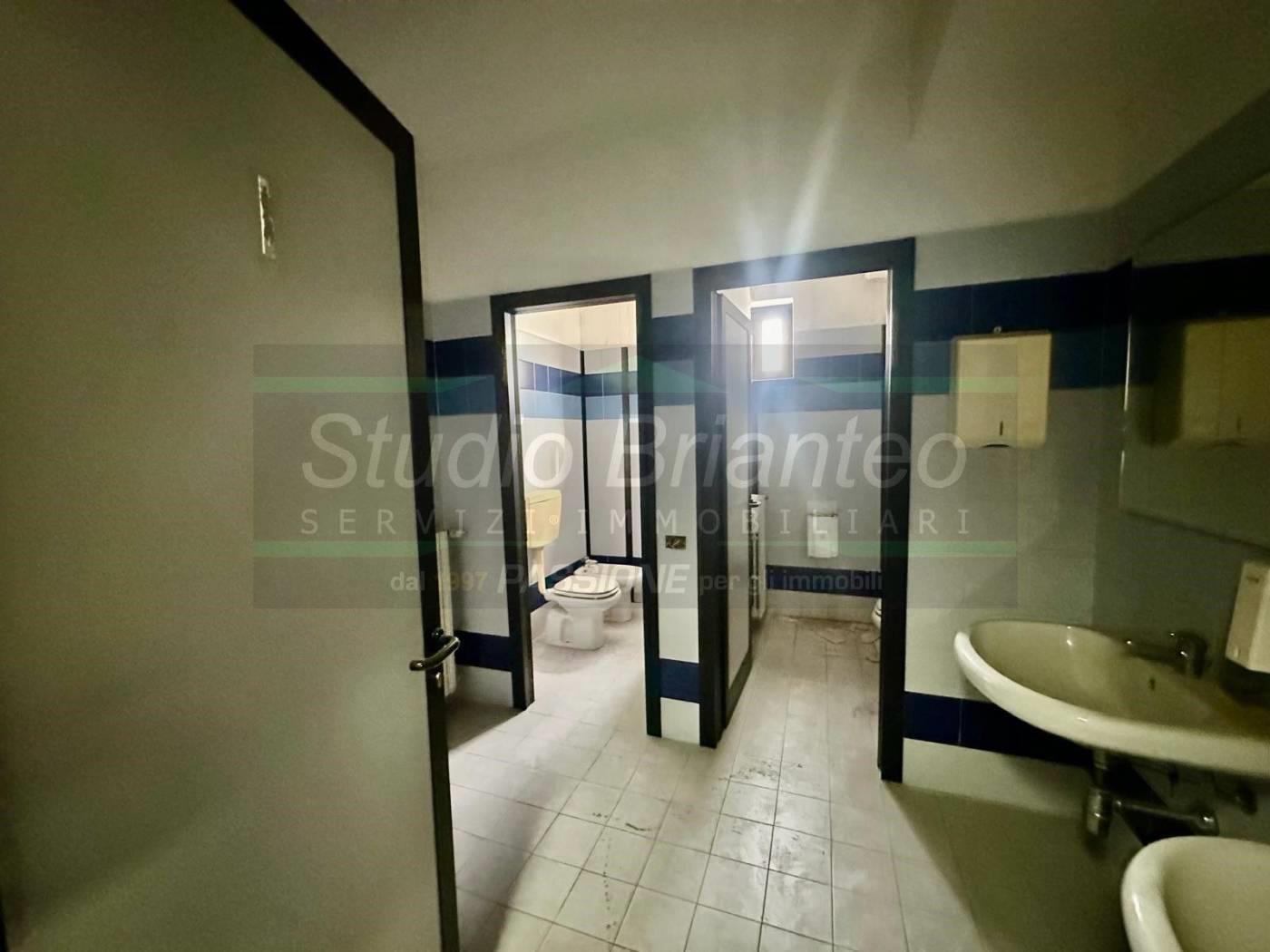 l'immobile si trova al piano primo (con uso esclusivo dell'ascensore) ed è al momento suddiviso, con pareti rimovibili, in sette locali più tre bagni, disimpegno d'ingresso con sbarco ascensore e un locale ad uso ripostiglio;