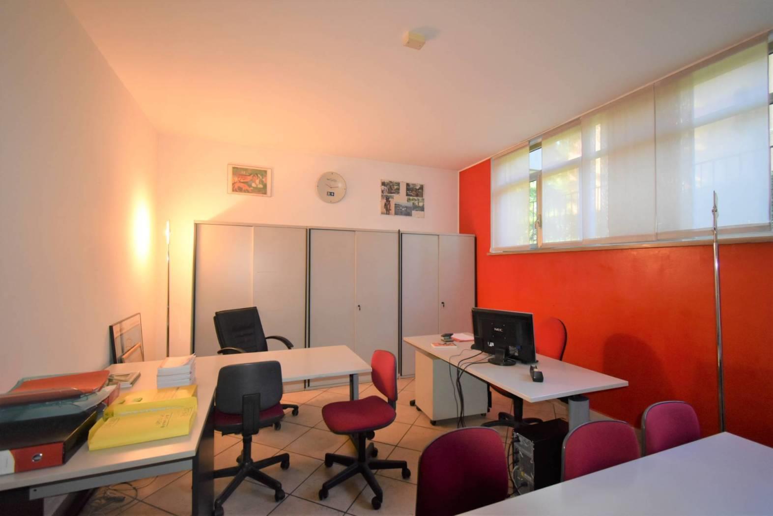 Bernareggio su strada di passaggio, all'interno di una palazzina al piano seminterrato proponiamo ampio spazio adibito in parte ad uffici e in parte a laboratorio/magazzino, ideale per varie attività lavorative. I locali luminosi grazie alle finestre che li circondano si trovano nel piano seminterrato hanno un doppio accesso, il primo indipendente direttamente dal giardino ed il secondo dal condominio tramite ascensore, si presentano in perfetto stato di manutenzione e con impianti a norma, riscaldamento centralizzato con termo valvole. Libero subito, possibilità di arredi di scrivanie e armadi come da foto.