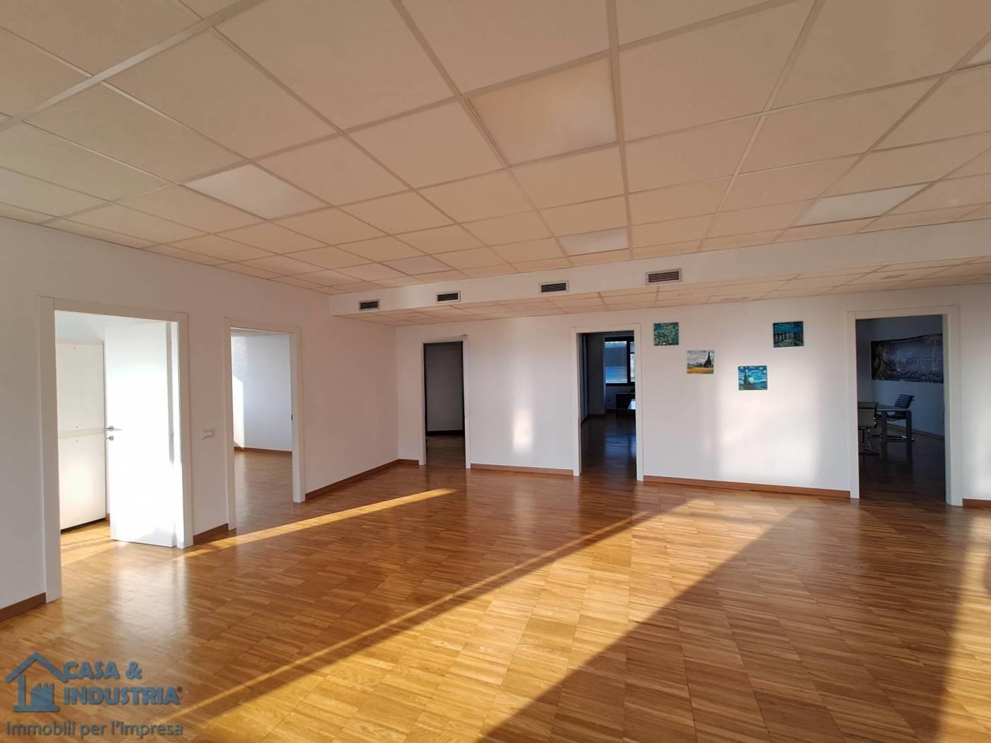 L’ufficio è suddiviso in cinque locali oltre a un’ampia area open space, garantendo un’ottima organizzazione degli spazi. Completano la soluzione doppi servizi igienici e un locale server.
