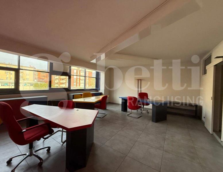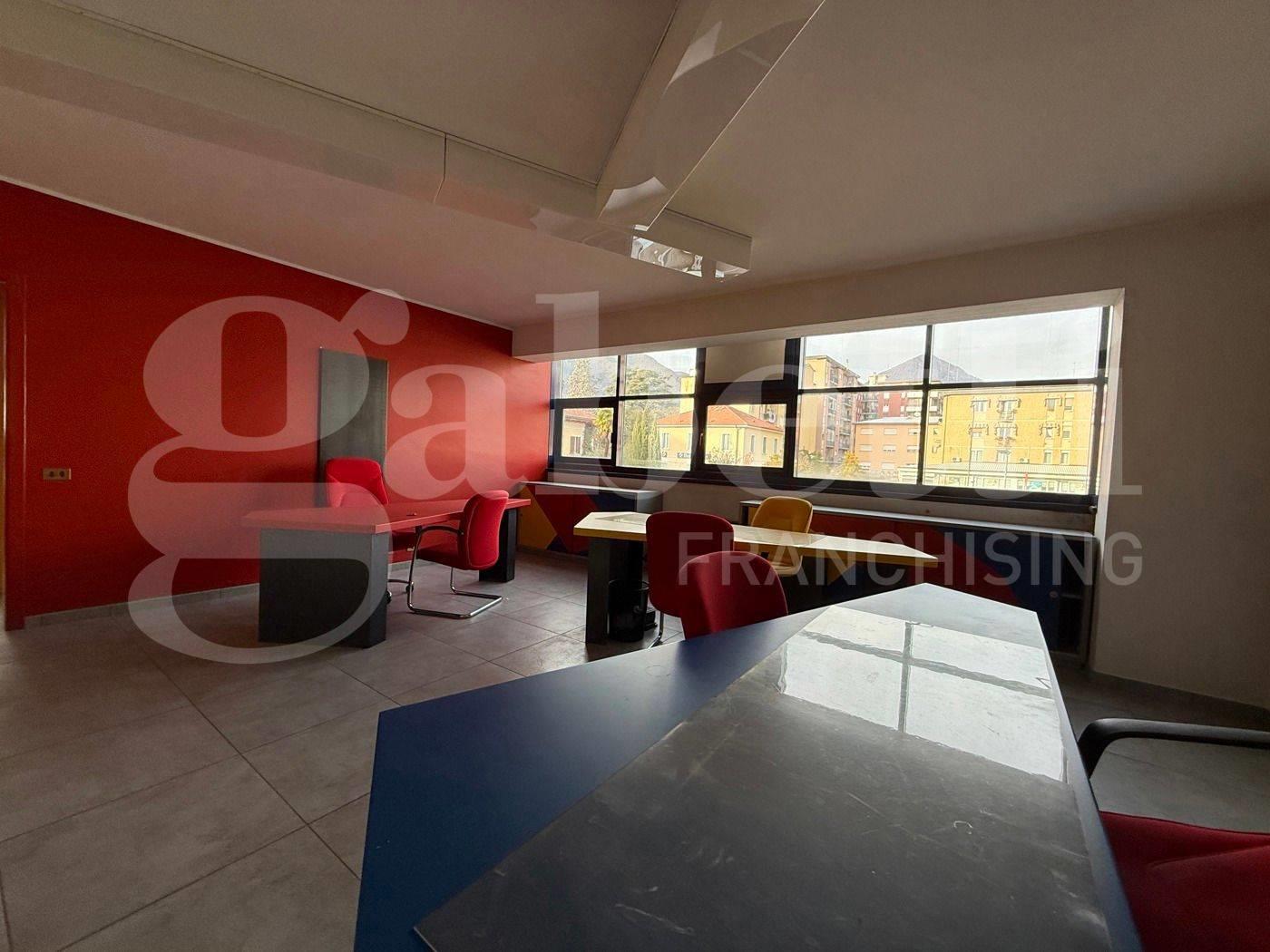 ingresso,ampio salone con diverse postazioni e vetrate , 2 studi ampi e bagno + ripostiglio .