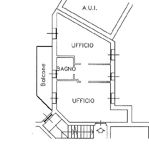 VENDESI UFFICIO posto al piano primo con BALCONE e completo di CANTINA e BOX