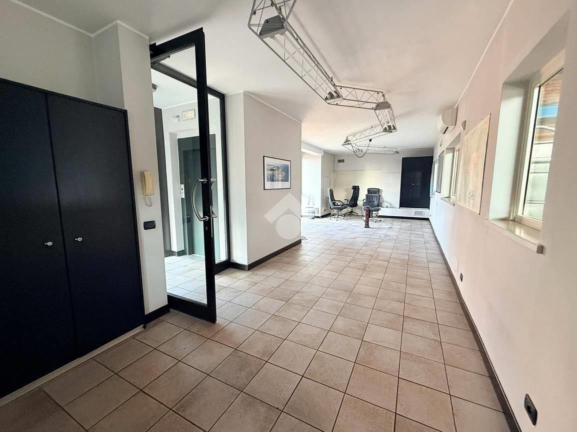 Il piano terra, con ingresso indipendente direttamente dalla strada, è composto da una zona reception, un locale attesa/archivio e doppi servizi. Il primo e secondo piano sono composti da ampi locali open space, divisibili con pareti mobili, menre il terzo e ultimo piano è adibito attualmente a locale archivio con doppi servizi e due vani tecnici nel sottotetto.