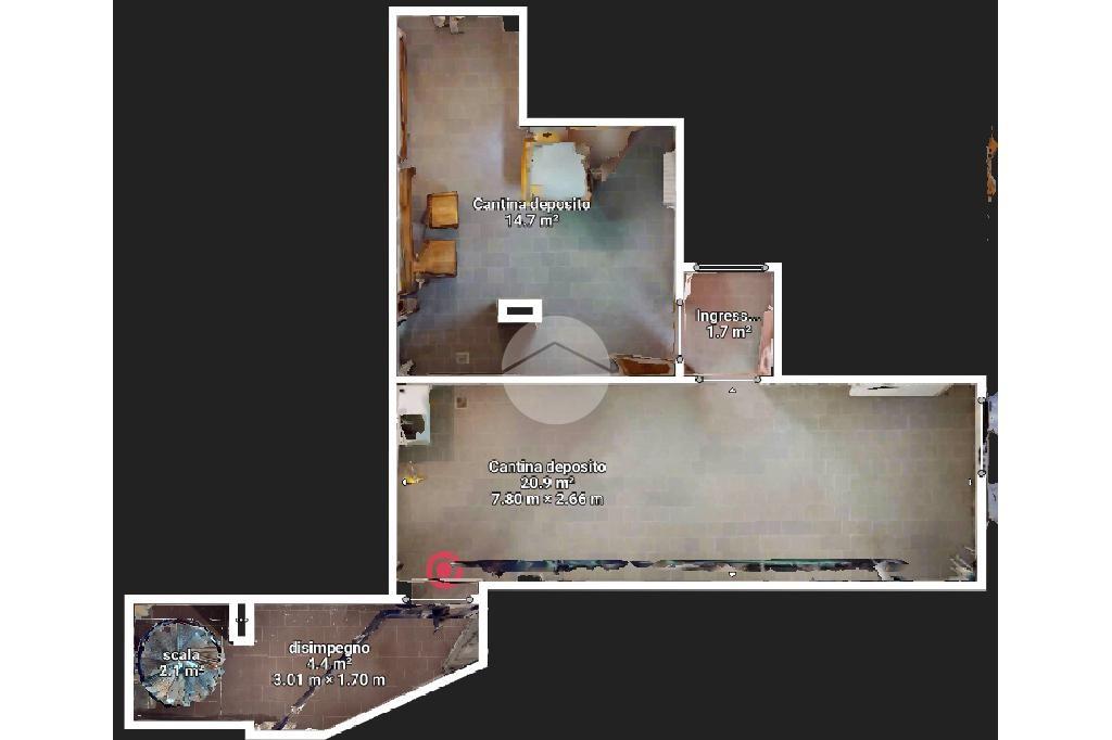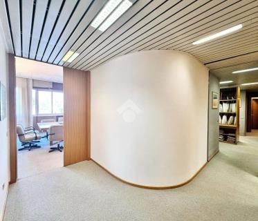 la disposizione interna è assai squadrata e regolare, è suddivisa in diverse stanze/uffici e dispone di due servizi igienici al piano terra. e' presente anche una parte seminterrata ad uso cantina deposito con accesso sia interno che dalla scala condominiale nella quale sono presenti anche predisposizioni attacchi acqua ed allaccio tv e suoneria del cancelletto esterno.