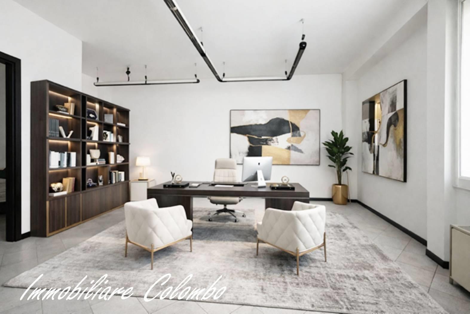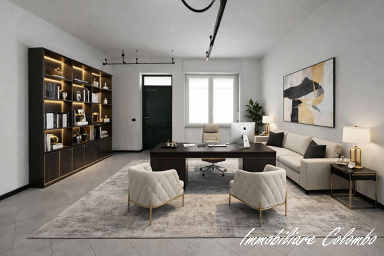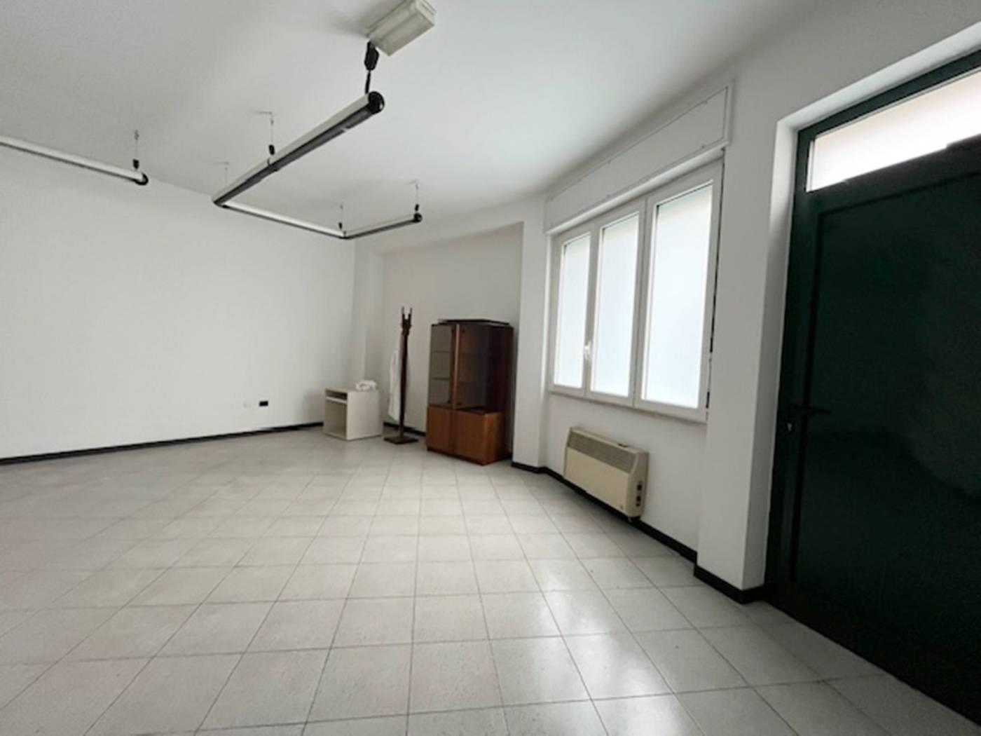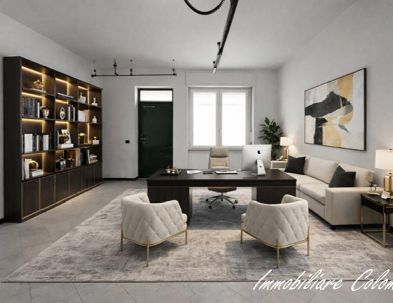 In contesto di poche famiglie, ufficio sito al piano terra con ingresso indipendente di mq. 80 ca. composto da due locali, bagno e ripostiglio. Piano interrato di mq. 35 ca. Riscaldamento autonomo. Serramenti in Pvc con doppi vetri e oscuramento garantito da tapparelle in Pvc. Porte interne in legno a battente. Pavimentazione in ceramica posa diagonale. Nessuna spesa condominiale. Esposizione NORD - EST. (I render degli interni sono indicativi).