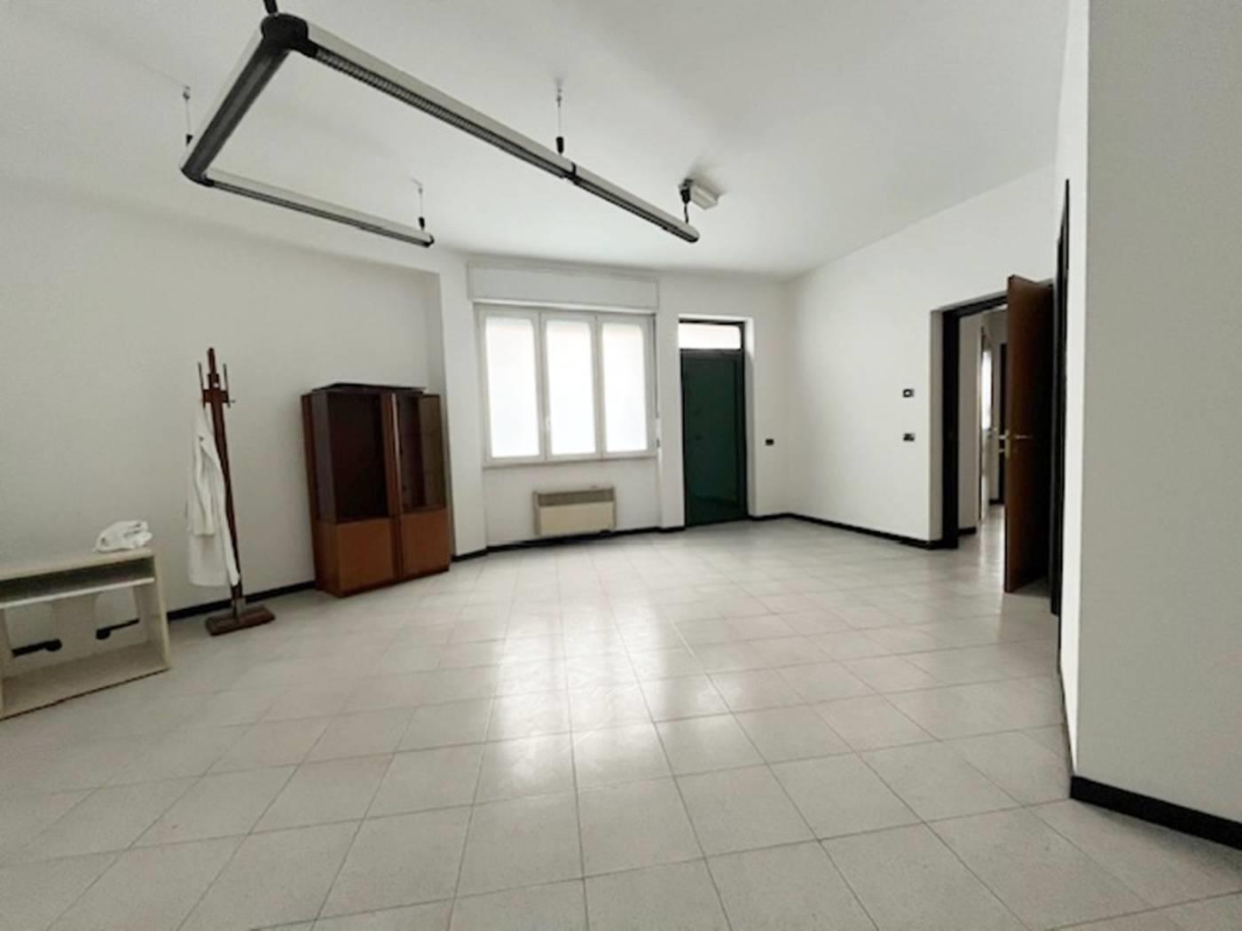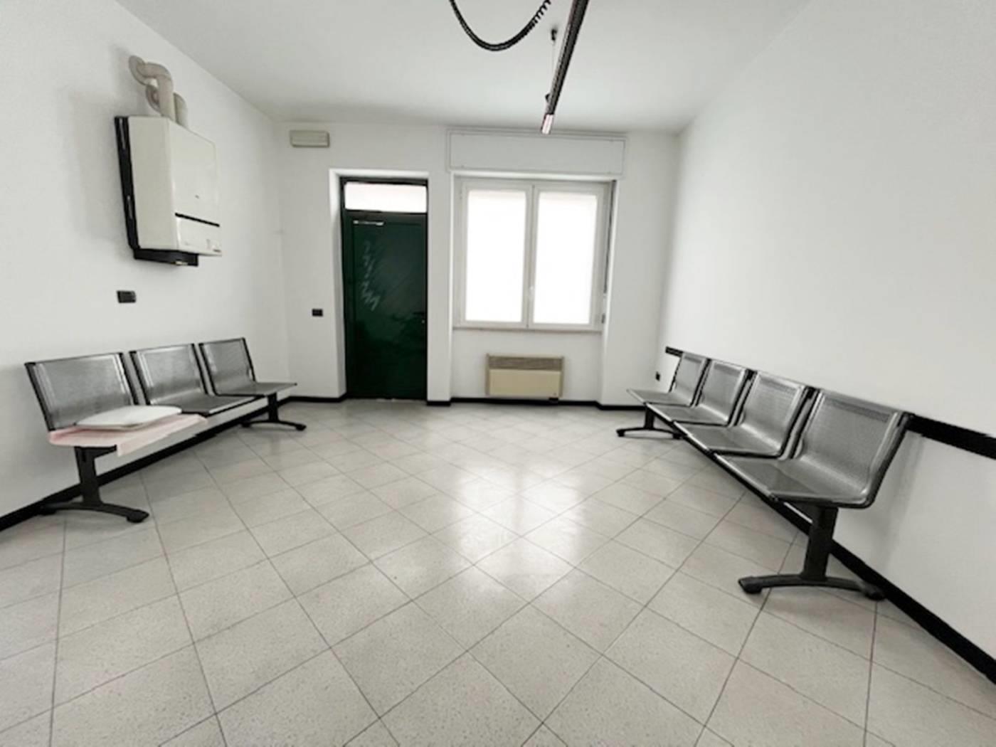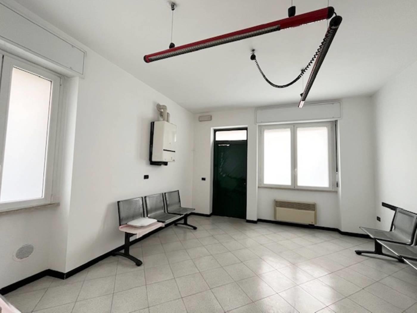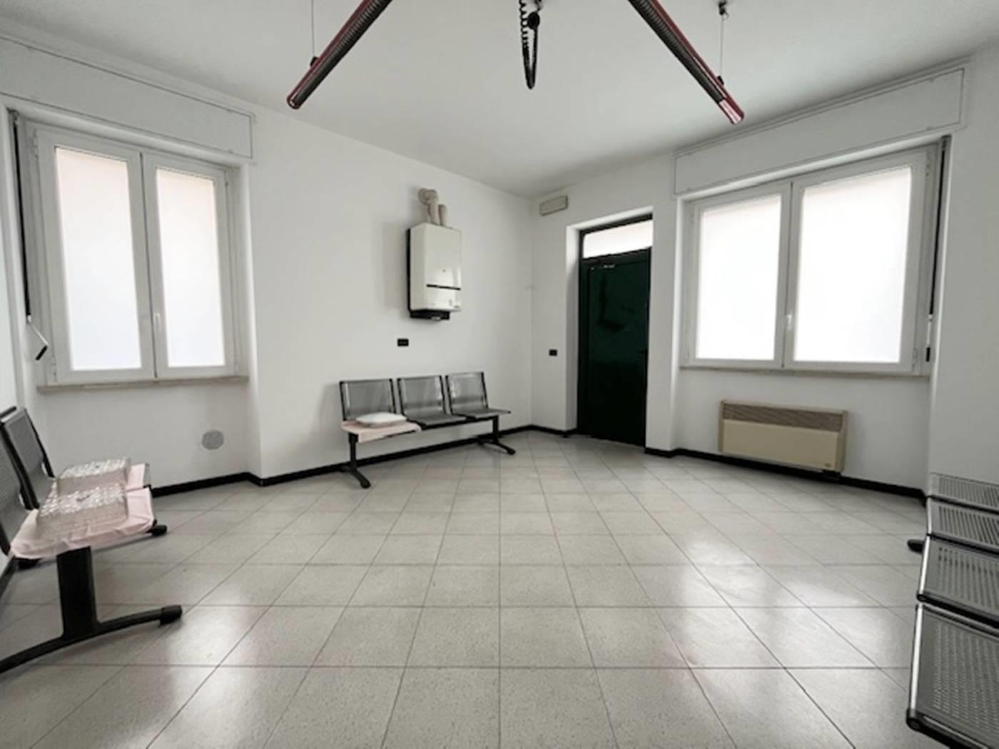 In contesto di poche famiglie, ufficio sito al piano terra con ingresso indipendente di mq. 80 ca. composto da due locali, bagno e ripostiglio. Piano interrato di mq. 35 ca. Riscaldamento autonomo. Serramenti in Pvc con doppi vetri e oscuramento garantito da tapparelle in Pvc. Porte interne in legno a battente. Pavimentazione in ceramica posa diagonale. Nessuna spesa condominiale. Esposizione NORD - EST. (I render degli interni sono indicativi).