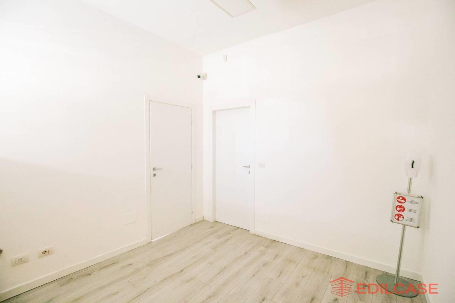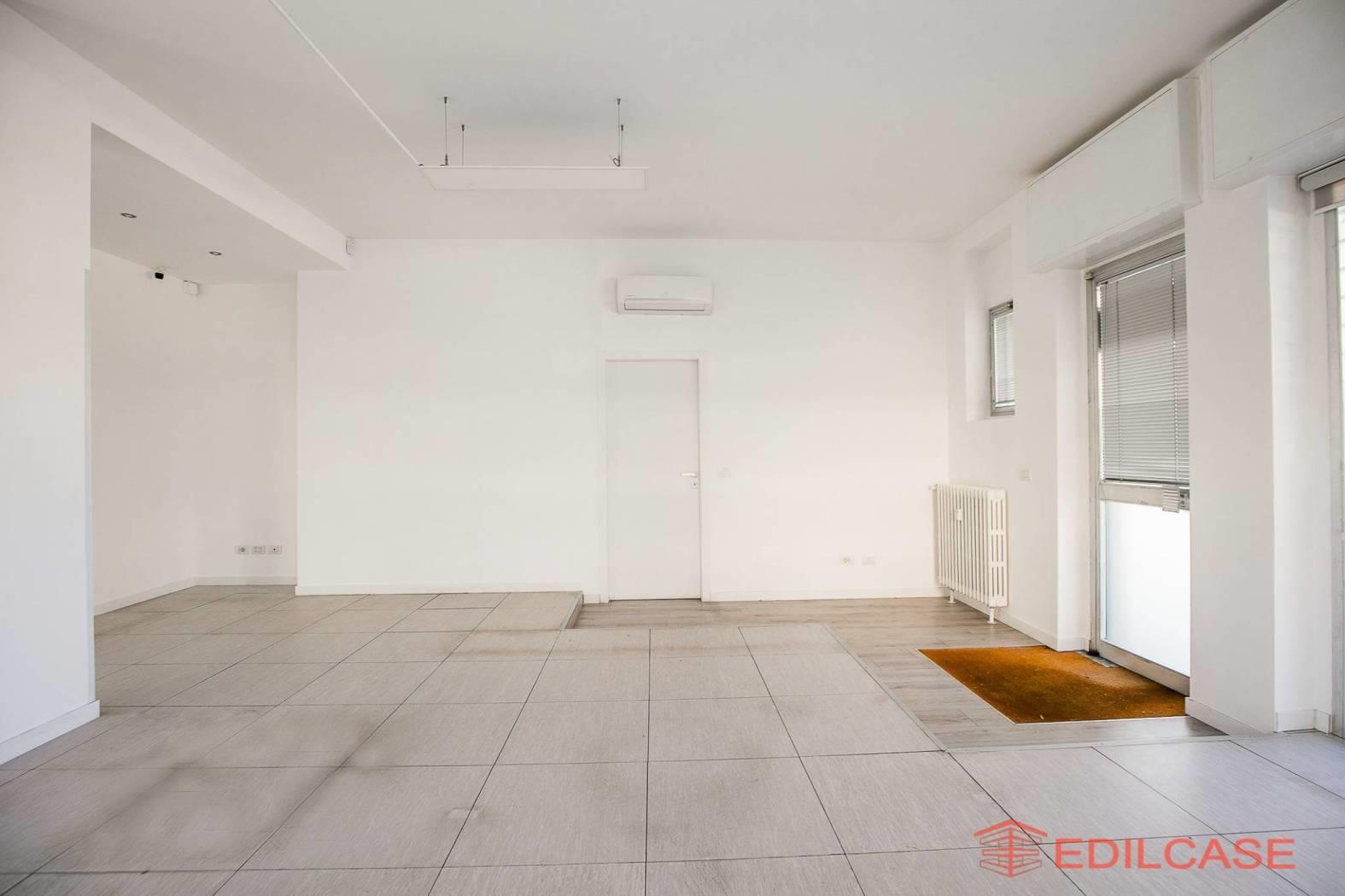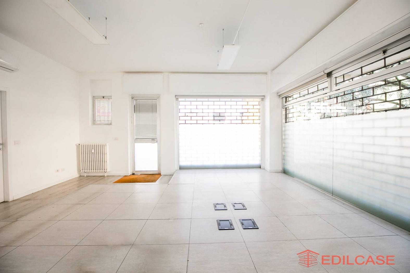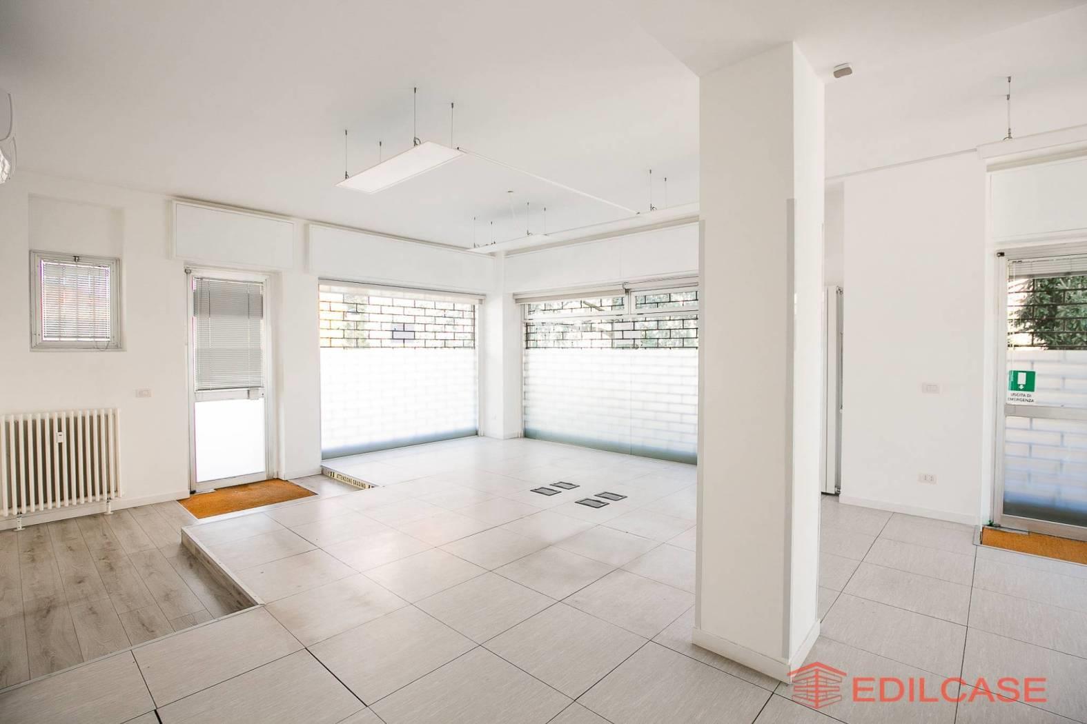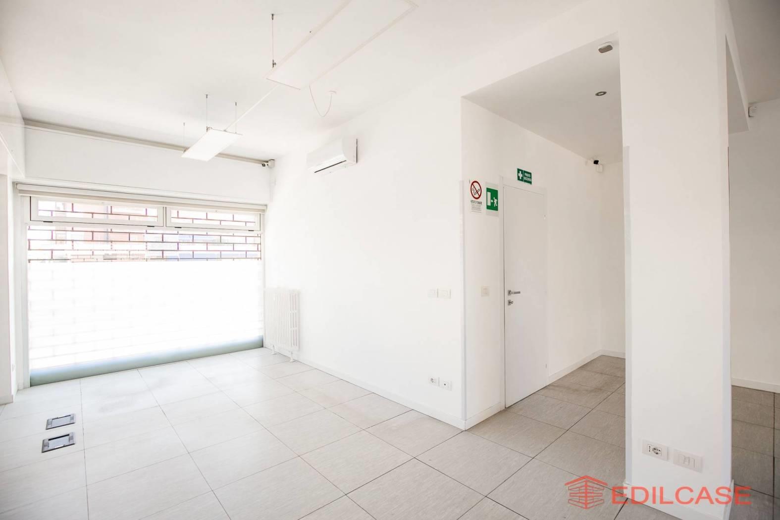 L' immobile è posto al piano rialzato di uno stabile condominiale, gode di tripla esposizione ed ha 4 vetrine su strada, ha una superficie di mq. 95 c.a. ed è composto da ampio open space, con locale archivio e servizi separati uomo donna; la tripla esposizione e i vari punti luce sull'esterno permettono qualora si rendesse necessario, un pratica divisione in più spazi con l'ausilio di pareti mobili. L’ufficio inoltre, è dotato di pavimenti galleggianti, che consentono una gestione più comoda e flessibile del passaggio degli impianti elettrici e dati, ideale per studi professionali o attività direzionali moderne. Le saracinesche sono motorizzate, impianto di climatizzazione con pompa di calore e antifurto con impianto di telecamere da implementare.