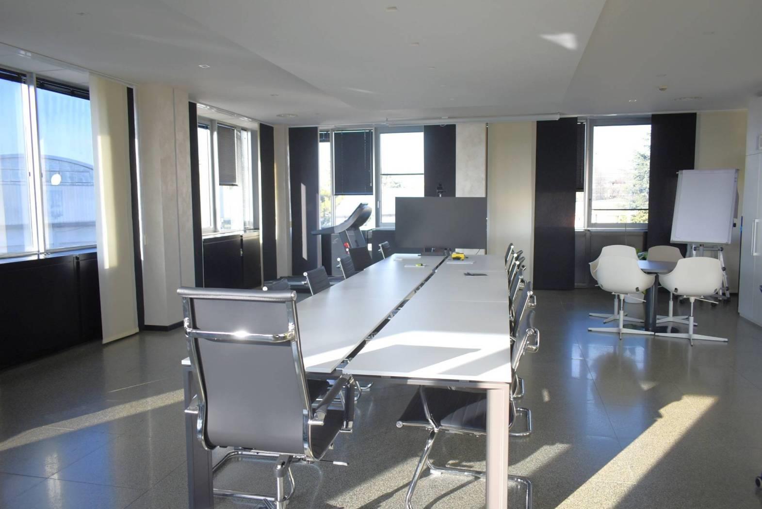 Ufficio a 900 metri dalla Metropolitana fermata Cologno Nord linea verde, di mq 330 al primo piano servito da doppio ascensore. All'interno di una palazzina ad uso ufficio ristrutturata nel 2022, l'ufficio si presenta pronto per essere utilizzato, con suddivisioni in cartongesso eventualmente modificabili in base alle proprie esigenze lavorative. Sono presenti impianto elettrico certificato ( completo di luci a led di elegante impatto estetico), cablaggio, impianto di riscaldamento e raffrescamento centralizzati le cui spese sono incluse nelle condominiali. Al piano interrato, su richiesta, sono presenti dei locali adatti come sale riunioni oppure depositi. Inclusi nel canone un posto auto in garage e due esterni. L'arredo nelle foto non è compreso nell'offerta.
