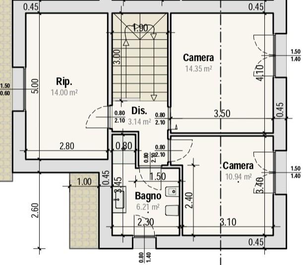 PIANO PRIMO: 3 AMPIE CAMERE DA LETTO con TRAVI A VISTA, Disimpegno e Bagno.