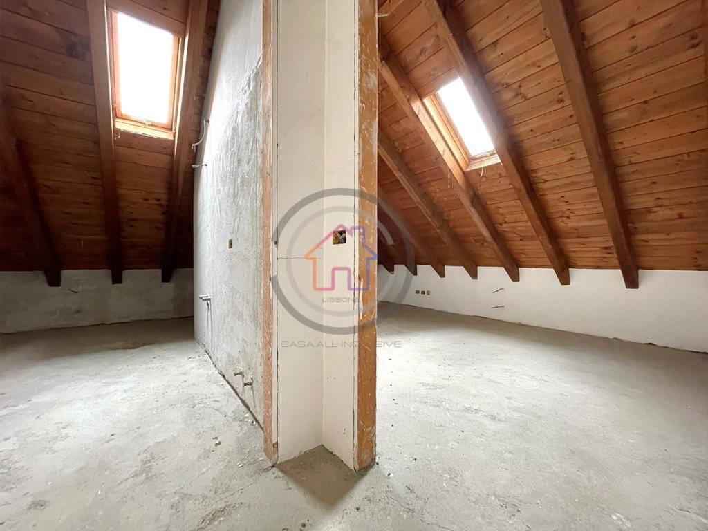 Graziosa mansarda con piacevoli travi a vista in legno naturale realizzata con una camera matrimoniale di generosissima metratura ed ulteriore bagno privato, il tutto servito da un ulteriore balcone .