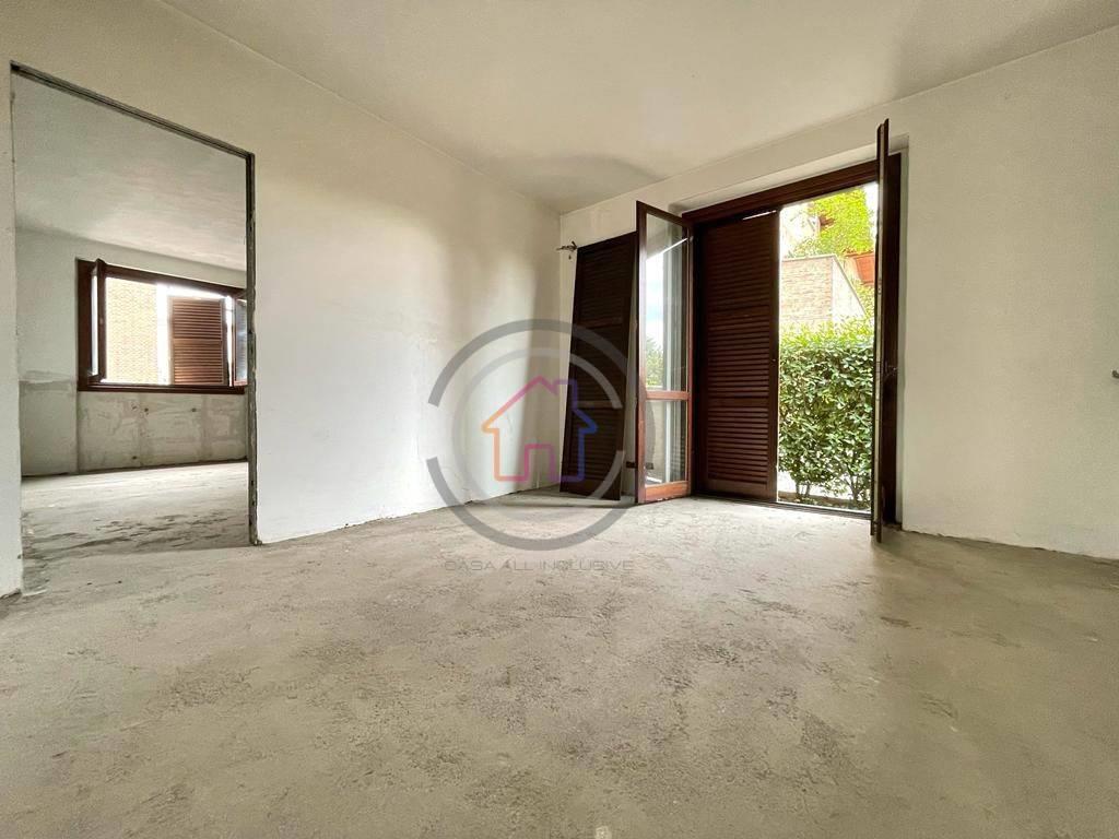 Ingresso su una spaziosissima area living con tripla esposizione sul GIARDINO PRIVATO di circa 100mq,