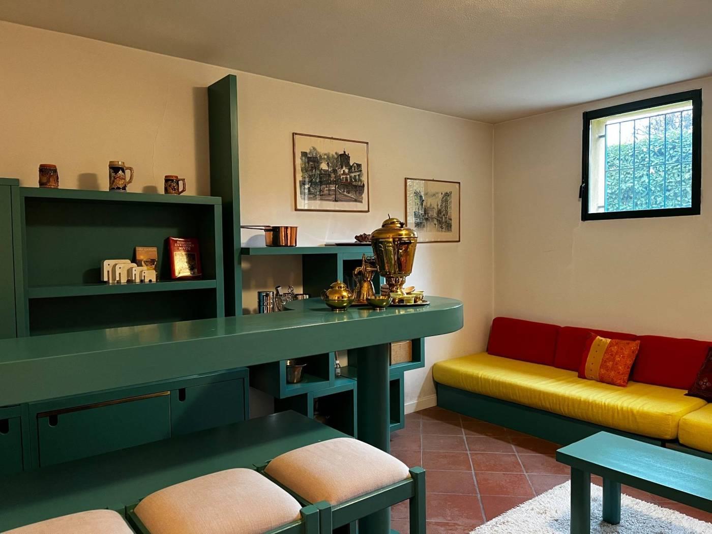 al piano seminterrato zona accessoriata da un box auto doppio ,locale tecnico ,locale lavanderia ,servizio con box doccia, taverna-- locale ricreativo / giochi ,con angolo bar --