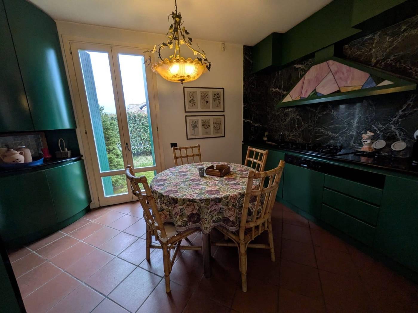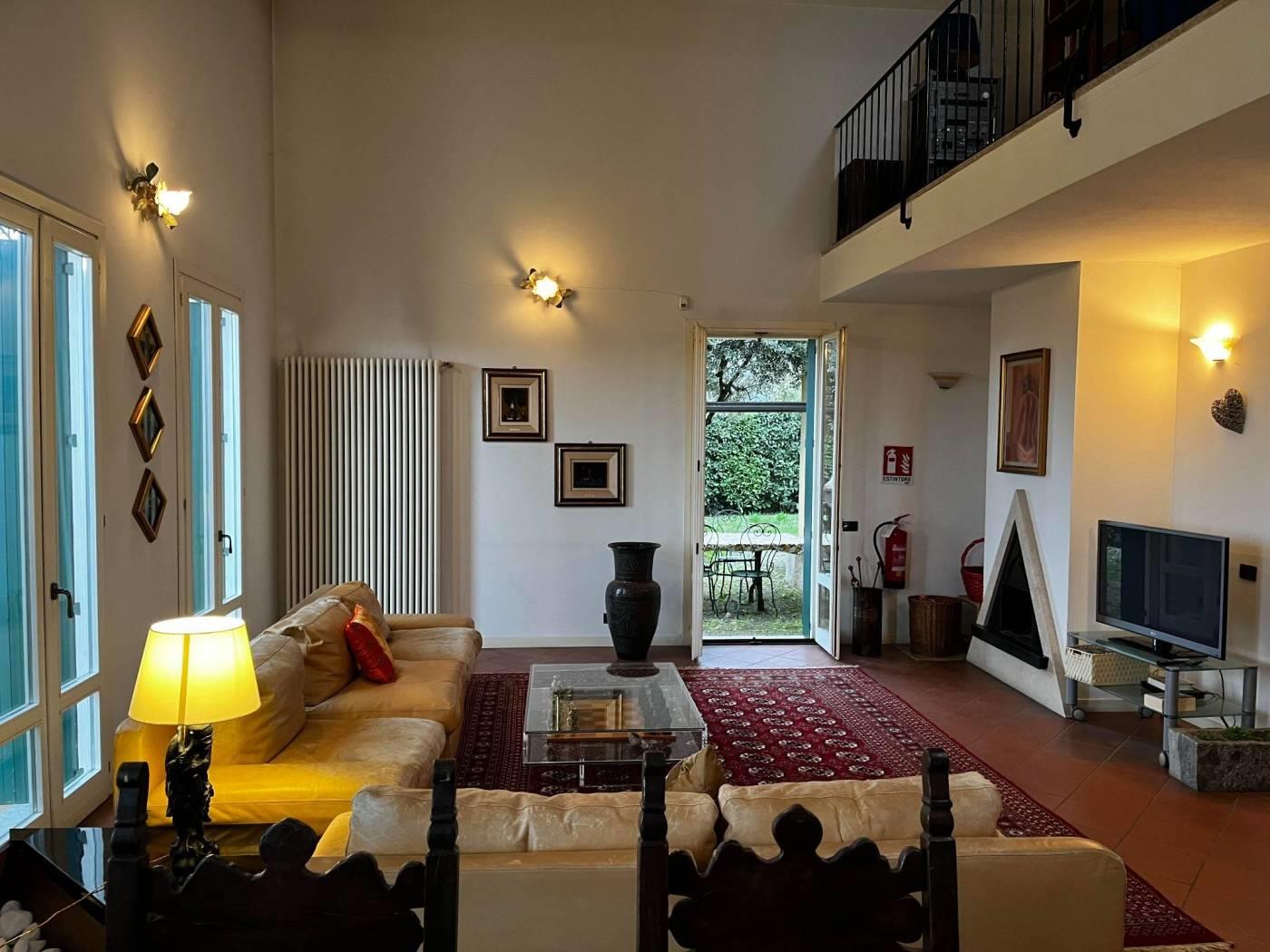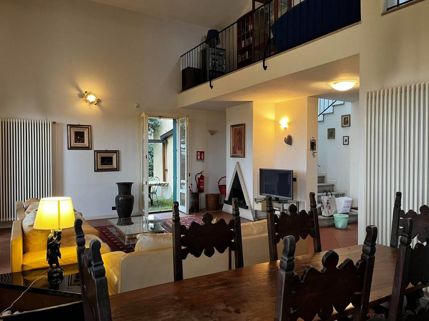 Albavilla Como: Villa singola inserita in un tranquillo contesto residenziale in posizione collinare composta da: Ingresso, un grande e luminoso salone con zona giorno living con camino e cucina abitabile completamente arredata
