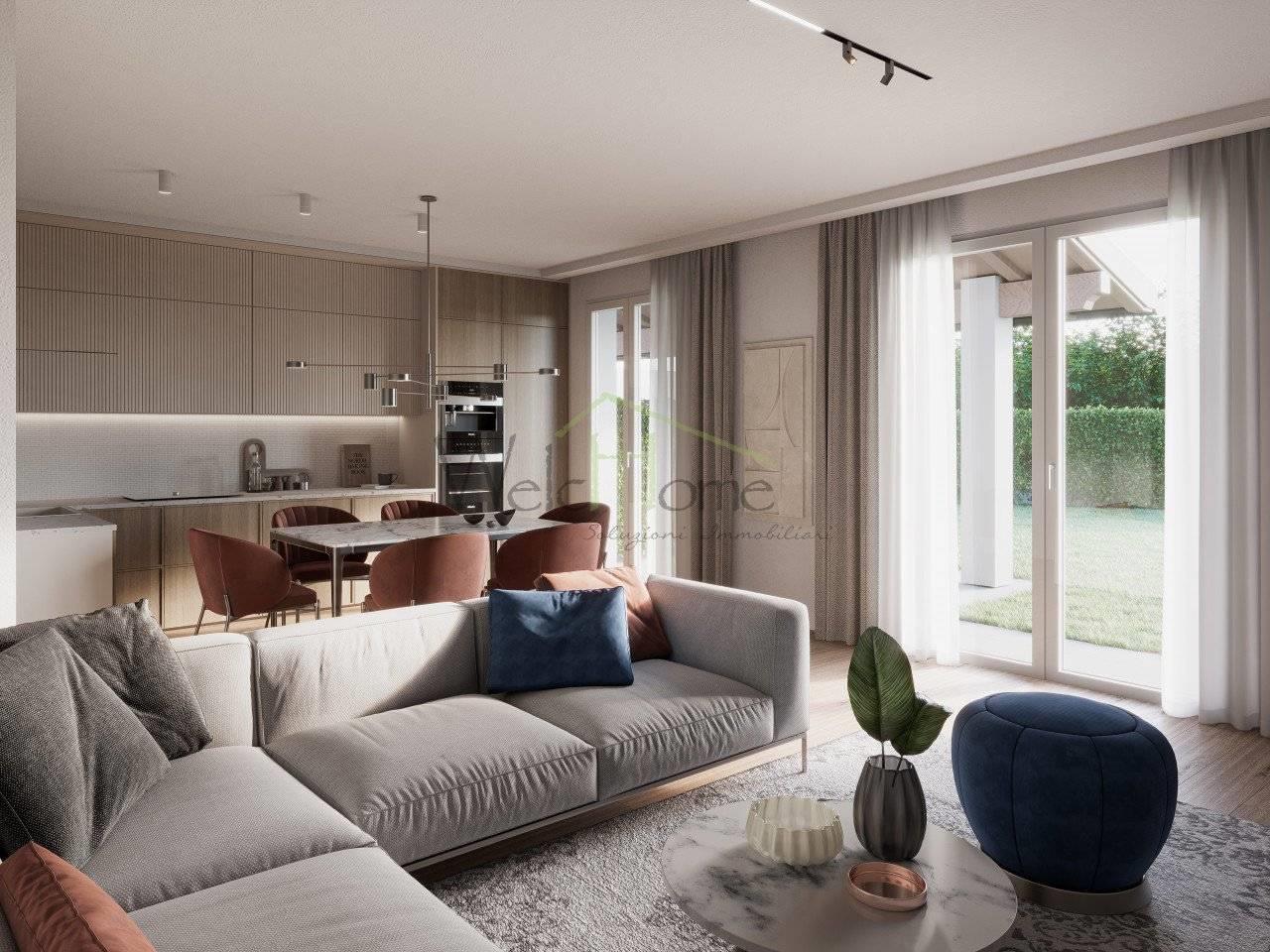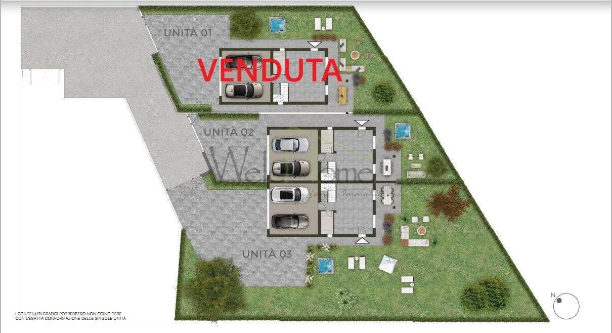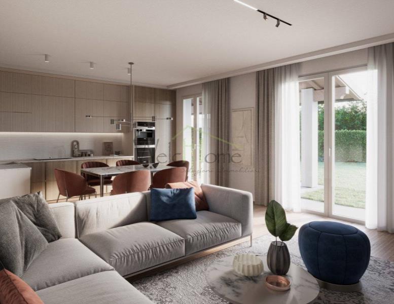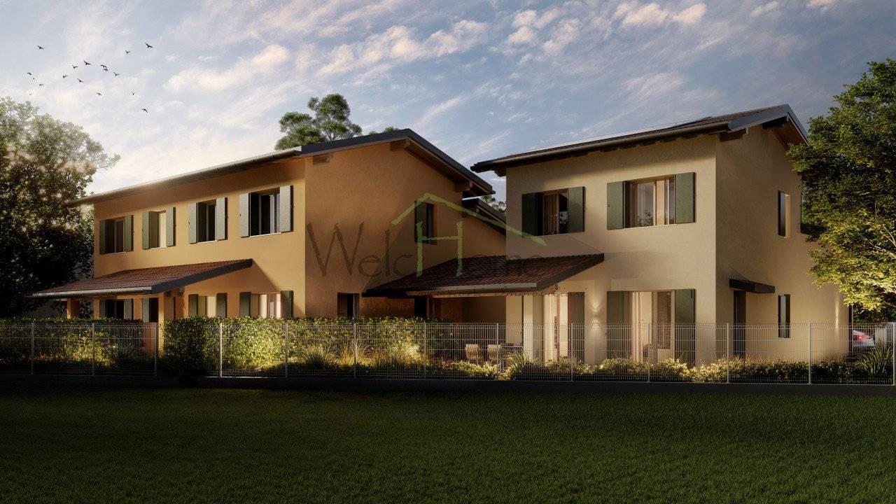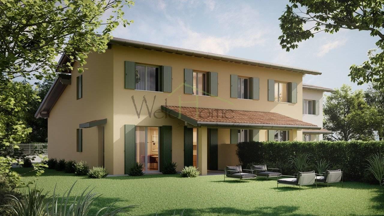 Albese con Cassano, posta al termine di una via a fondo cieco della zona centrale del paese, quindi tranquilla ma comoda con tutti i servizi, proponiamo interessante porzione di villetta bifamiliare di nuova costruzione caratterizzata da un'architettura classica.