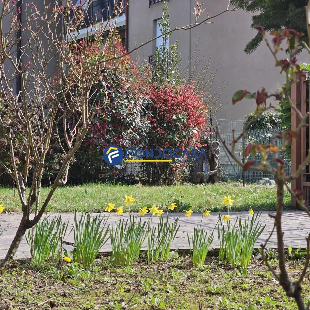 Al piano terra si trova il giardino privato, mentre al piano interrato completano la proprietà un ampio box quadruplo e una cantina.