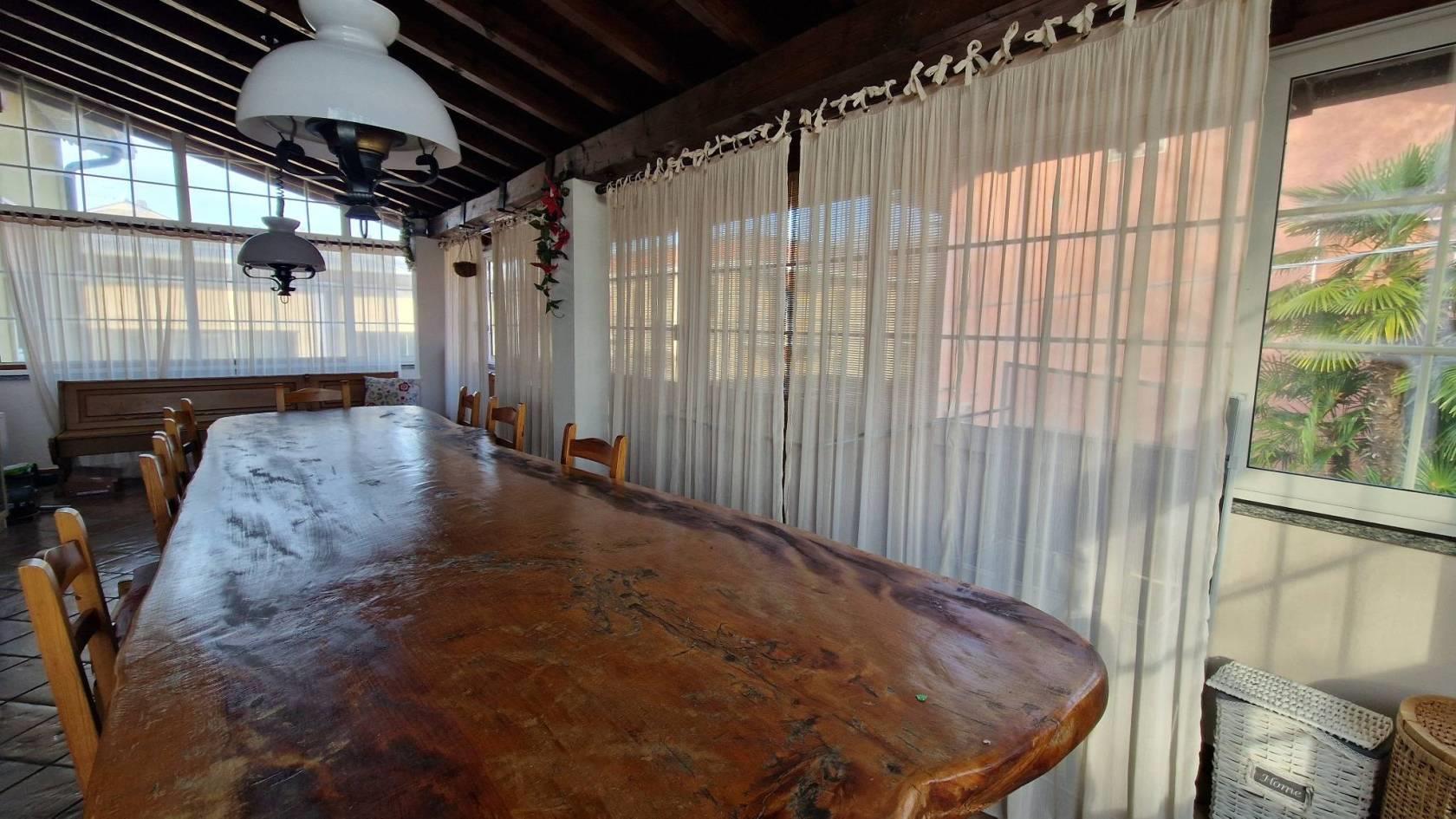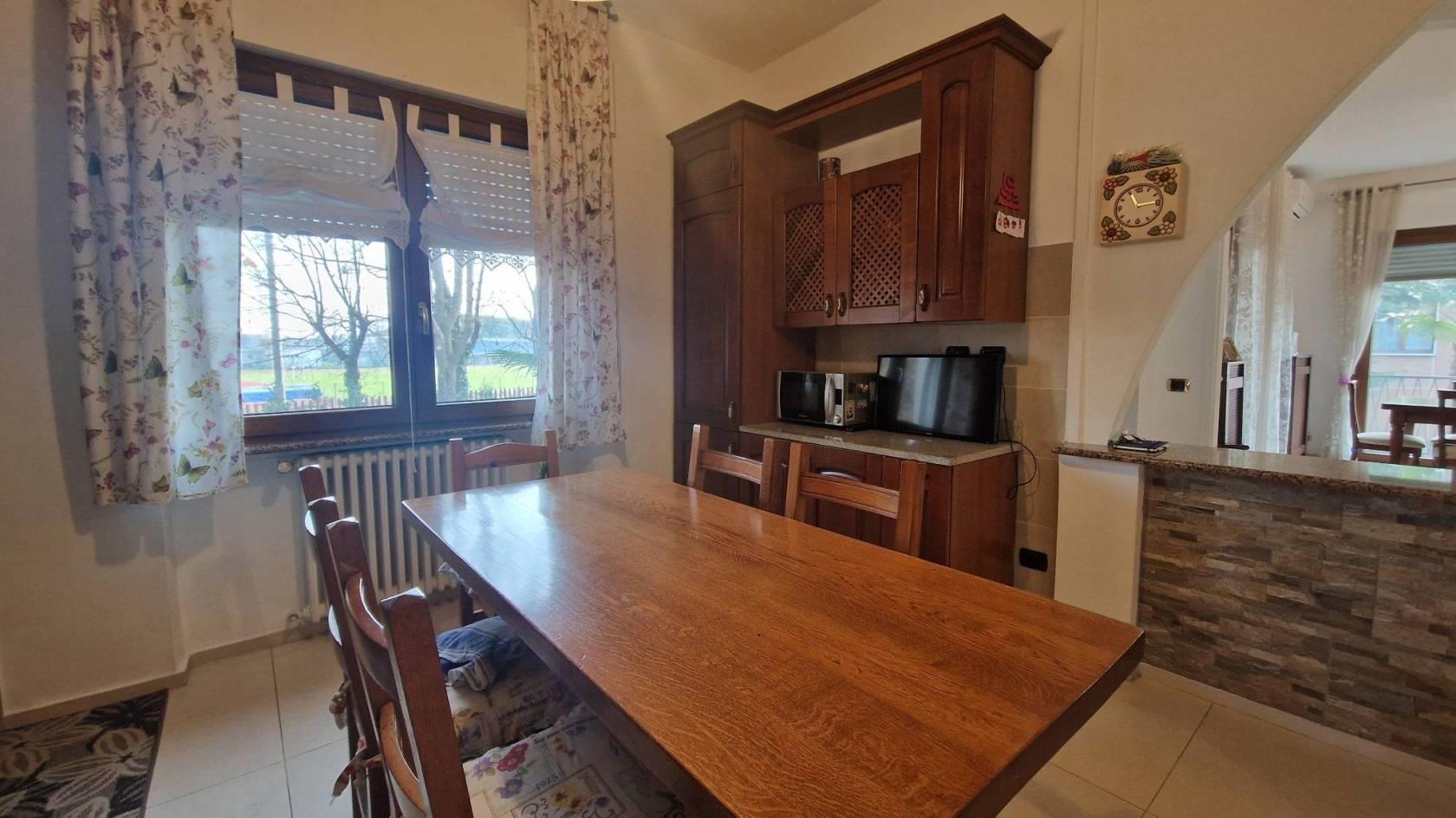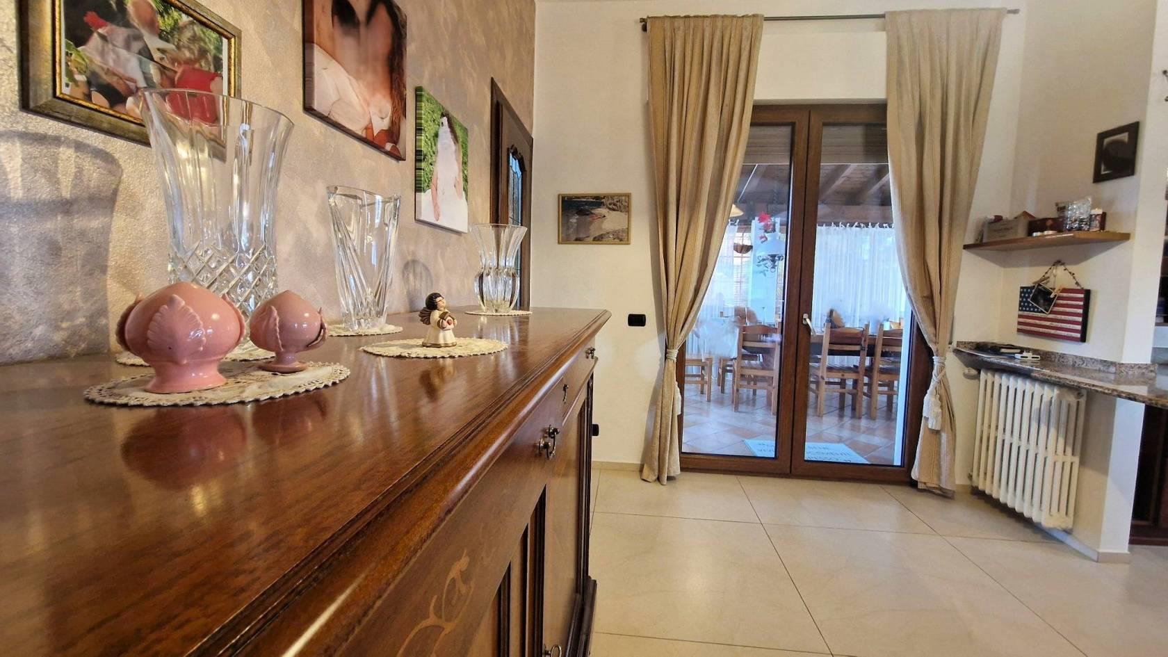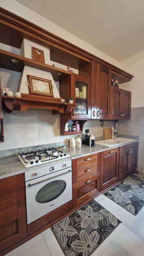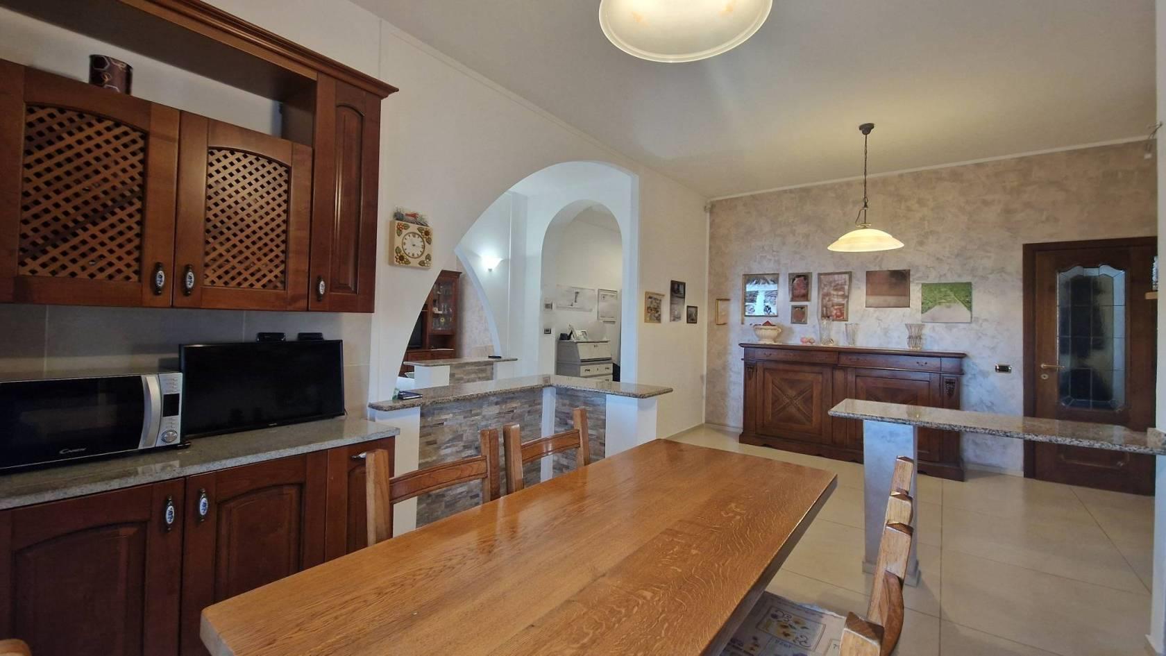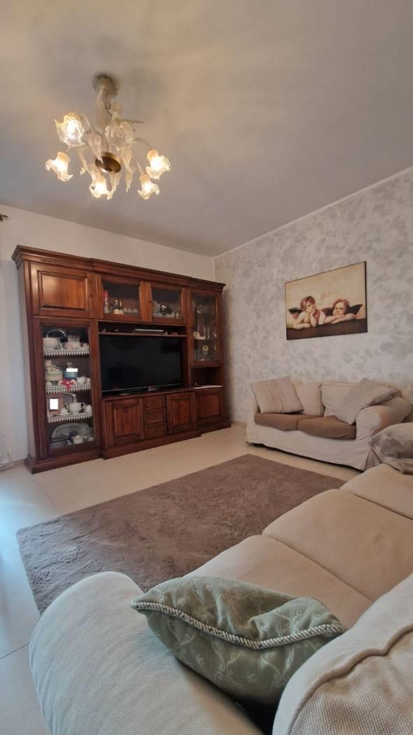 Luminoso soggiorno e una cucina abitabile con accesso su terrazzo spazioso perfetto per relax e momenti in famiglia.