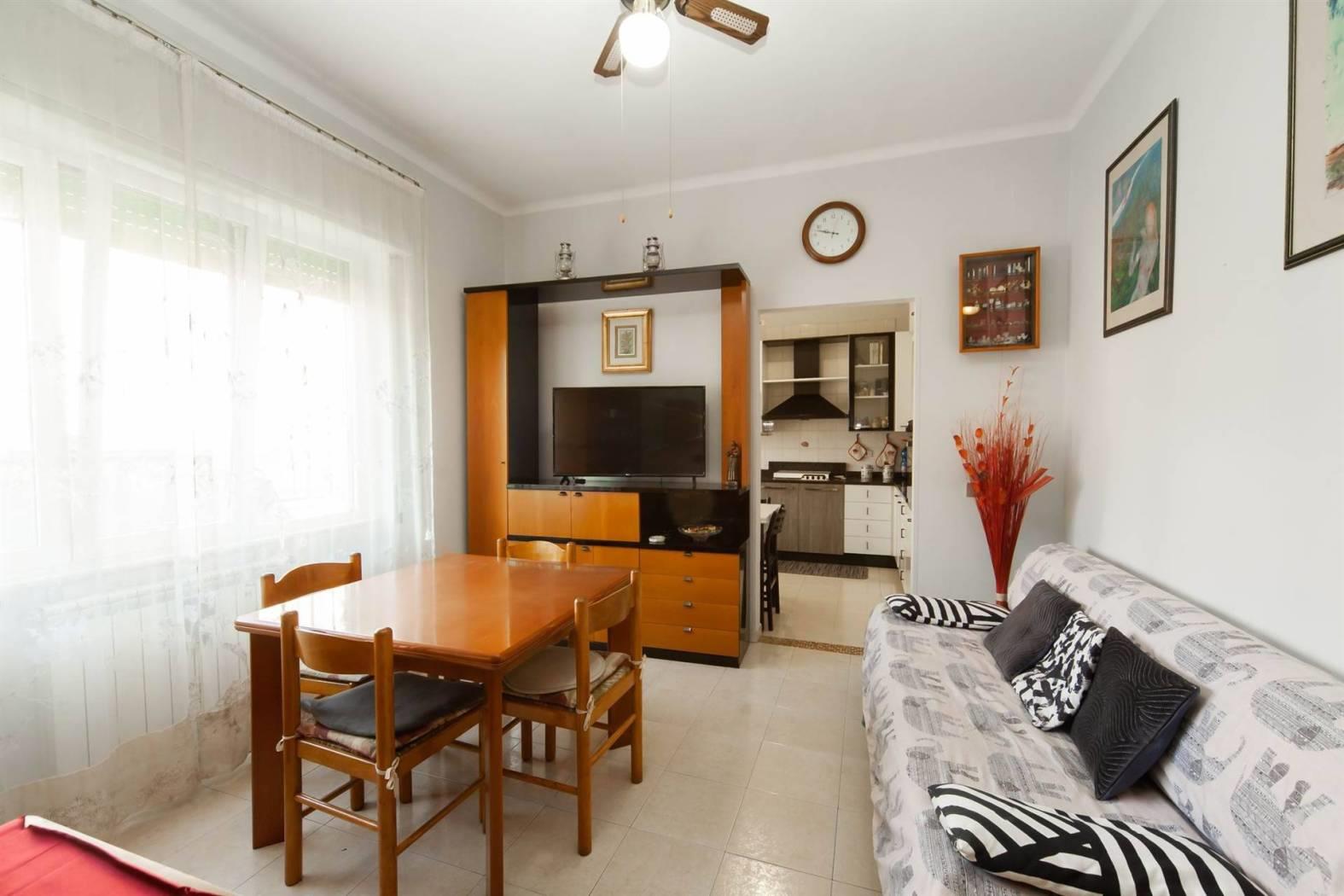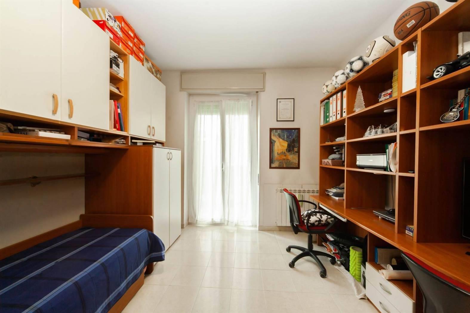 La soluzione è così composta: ampio ingresso che si affaccia sul soggiorno, cucina abitabile, camera matrimoniale, cameretta con balcone e bagno con doccia.