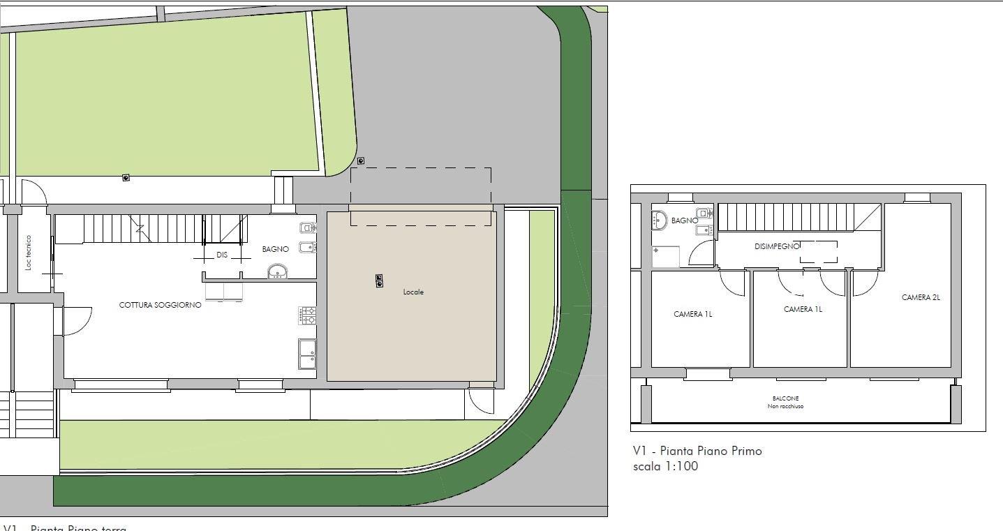 La soluzione è disposta su due livelli abitativi così disposti: l'ingresso si apre sull'ampia e luminosa zona giorno con cucina abitabile e lasciata a vista sul soggiorno caratterizzata dalla presenza di un'ampia vetrata che dà accesso al portico ed al giardino di proprietà, un comodo disimpegno attrezzato con attacco per lavatrice ed asciugatrice e bagno finestrato; attraverso una comoda scala interna si accede al piano primo dove troviamo due camere, un secondo bagno finestrato ed una camera matrimoniale.