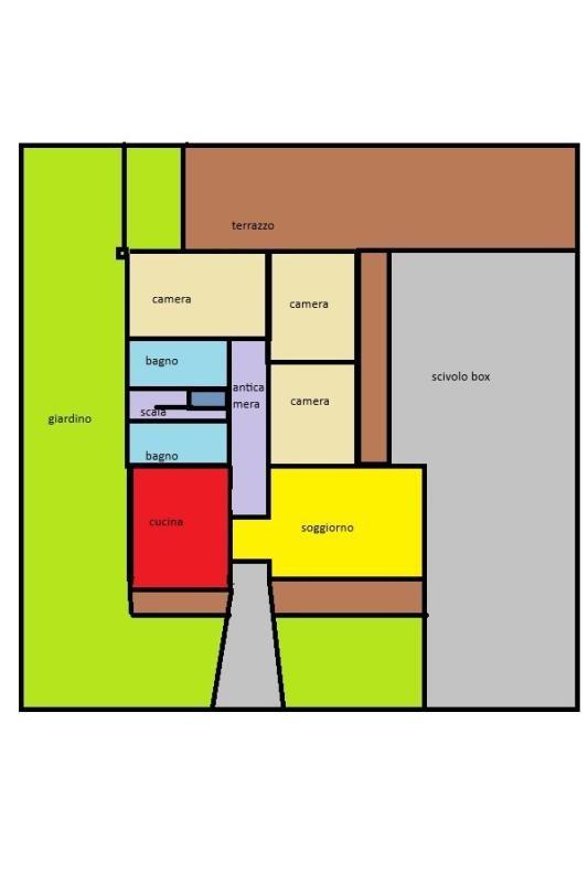 UNICO LIVELLO composta da: ingresso, cucina abitabile ampia, soggiorno doppio, 3 camere ( due delle quali, matrimoniali), 2 wc ( doccia e vasca idromassaggio) PI: taverna doppia (due locali ampi separati, accatastata come cantina) con termo camino e forno a legna, lavanderia, ripostiglio e locale caldaia. All'esterno ampio spazio per la legnaia. Ampio giardino in parte pavimentato, doppio ingresso. Isolamento dell'immobile in poroton da 25, intonaco interno e lana di roccia da cm 3, SERRAMENTI IN PVC CON DOPPI VETRI, TAPPARELLE ELETTRICHE COMANDATE A DISTANZA, TELECAMERE ESTERNE, ALLARME INTERNO. Cubatura residua possibilità ulteriore piano. BOX DOPPIO IN LARGHEZZA. FACCIATE E TETTO IN ORDINE.