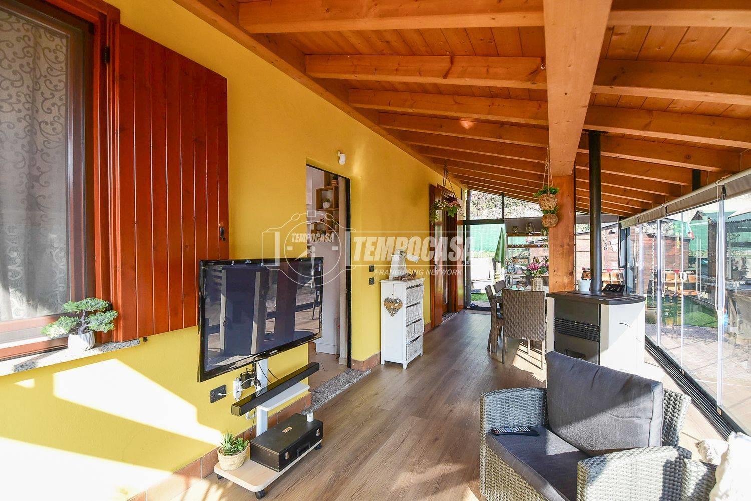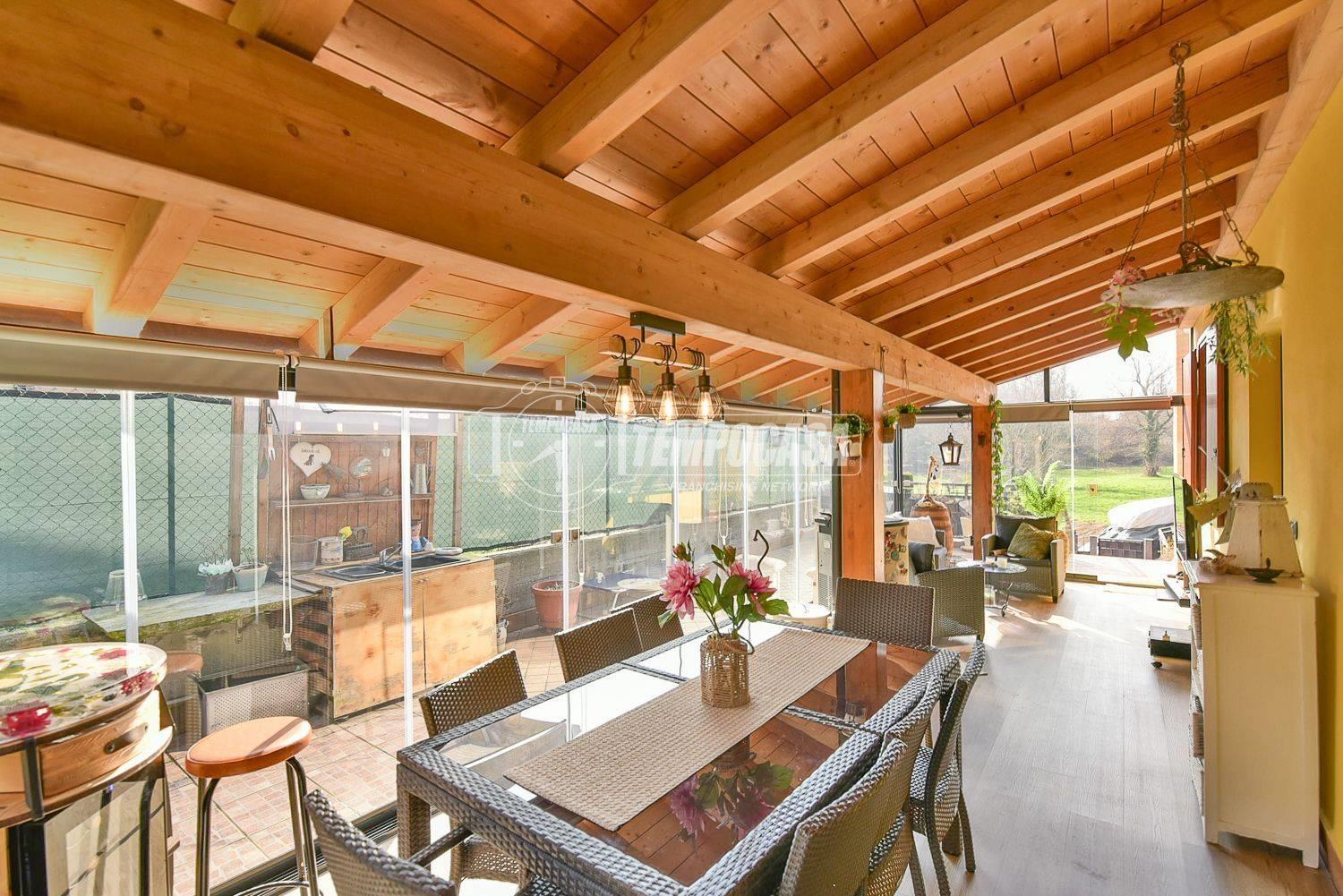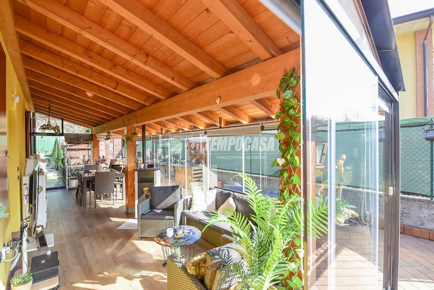 In zona tranquilla e immersa nel verde proponiamo in vendita una villa singola di quattro locali con veranda, giardino, taverna e box auto doppio.