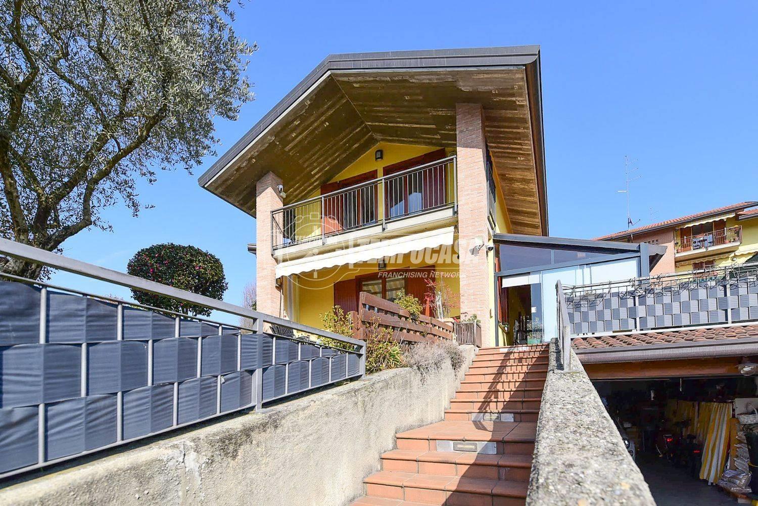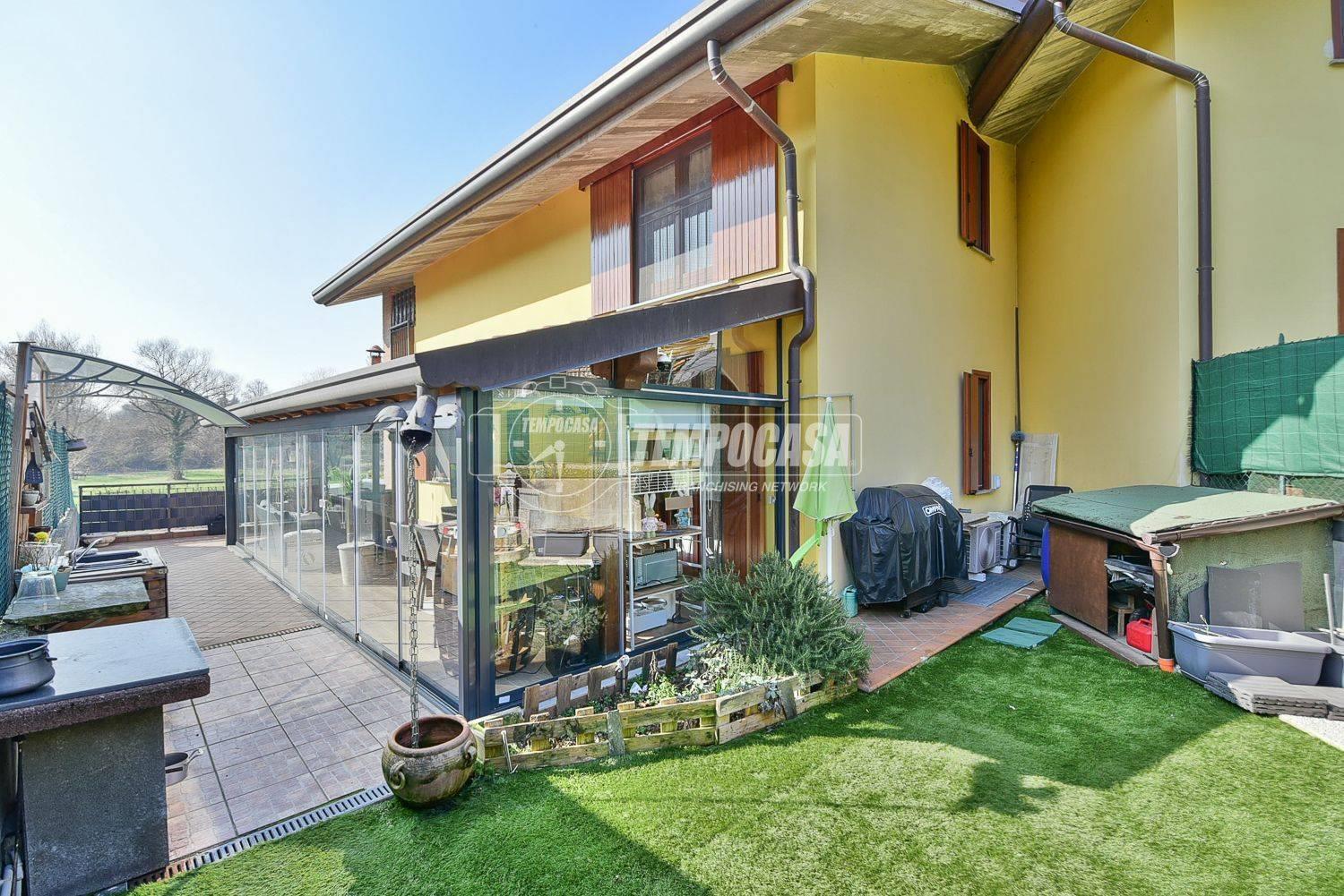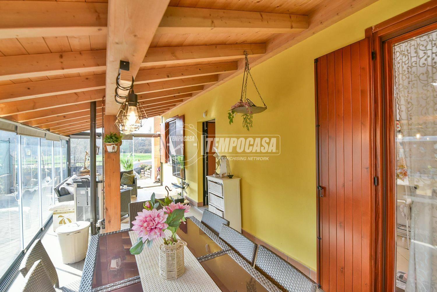 In zona tranquilla e immersa nel verde proponiamo in vendita una villa singola di quattro locali con veranda, giardino, taverna e box auto doppio.