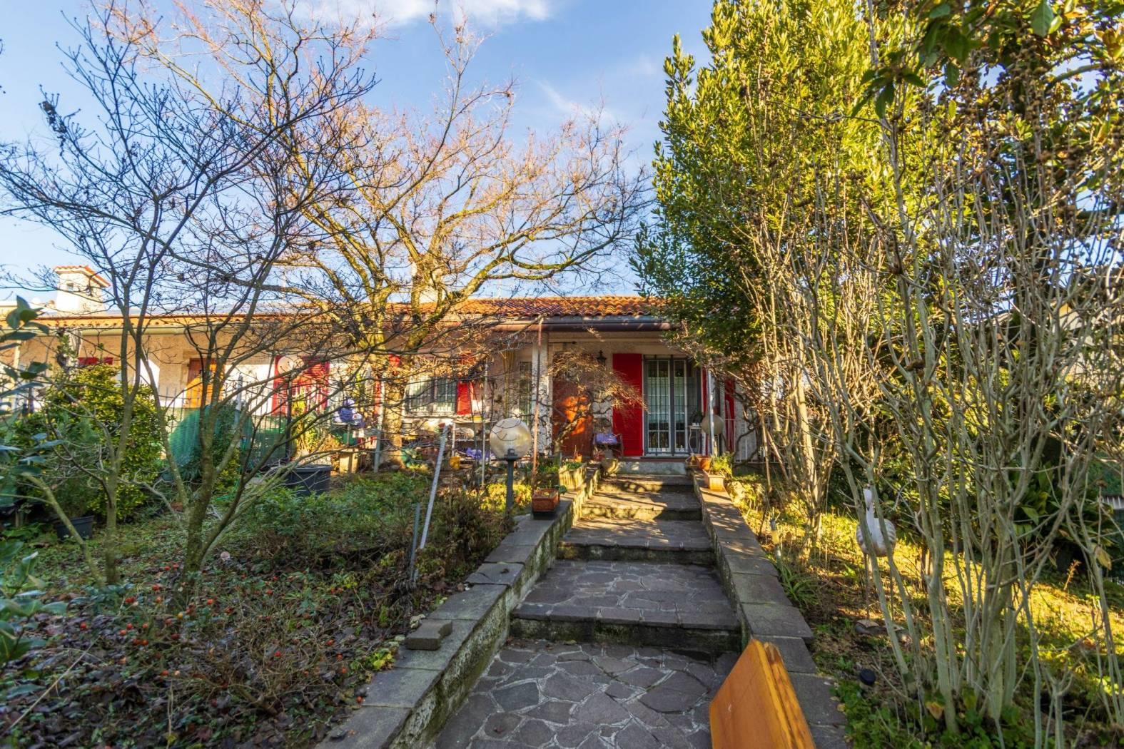 Carnate: porzione di villetta bifamiliare disposta su un unico livello. L'abitazione è composta da ingresso , soggiorno, cucina abitabile, disimpegno, due ampie camere da letto, ripostiglio e bagno; il tutto per un totale di mq. 87. Il giardino privato, distribuito su 2 lati è di mq. 230 ed il portico di mq. 6. Il box di mq. 16 è acquistabile al prezzo di € 13.000. La villetta negli anni è stata oggetto di migliorie ed innovazioni, Nel 2011 è stato rifatto completamente il tetto , isolandolo con pannelli Isotec, nel 2015 sono stati installati dei nuovi infissi in pvc con doppi vetri, installate le griglie di sicurezza e le zanzariere; nel 2016 è stata sostituita la caldaia, nel 2020 sono stati rifatti gli impianti della cucina e la pavimentazione, sostituite le porte interne ed installato uno split per aria condizionata con pompa di calore. Il prezzo richiesto è di € 192.000 oltre box € 13.000.