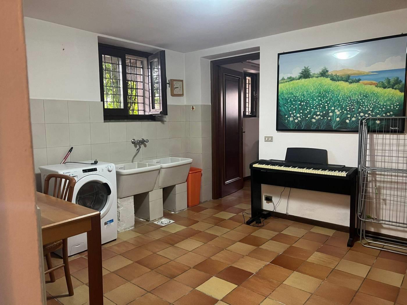 Al piano interrato è presente un locale adibito a cantina/locale caldaia, al piano seminterrato (dotato di finestre) sono ubicati due locali ripostiglio/taverna. L'ingresso all'immobile è direttamente dal giardino ed introduce al piano terra, dove è situata una grande cucina/soggiorno con due affacci sul giardino uno dei quali è caratterizzato dalla presenza di una veranda di mq 46. Tramite scala interna in legno si accede al piano interrato, già descritto, oppure si prosegue raggiungendo il piano primo dove si trovano due camere ed un bagno, prospicenti il balcone, proseguendo lungo la scala si incontrano: un'altra camera matrimoniale, un secondo bagno ed un locale sottotetto. Dalla camera matrimoniale si accede anche ad un ampio terrazzo che funge da copertura alla veranda. La proprietà si completa con un terreno di mq 1.700 che ha anche un secondo accesso da via Somalia. l'immobile, nel suo complesso, è stato oggetto di varie migliorie ed interventi di ristrutturazione ed ampliamento, negli anni, ed oggi si presente in perfette condizioni di manutenzione.