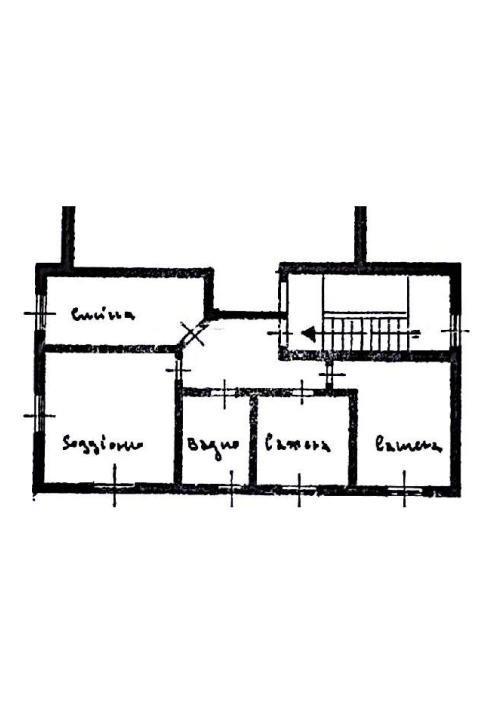 -Piano primo appartamento di 85 mq di 3 locali e composto da ingresso soggiorno, cucina, due camere da letto, un bagno e tre balconi.
