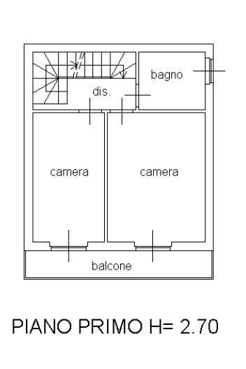 • piano primo: due camere da letto con balcone e secondo bagno;