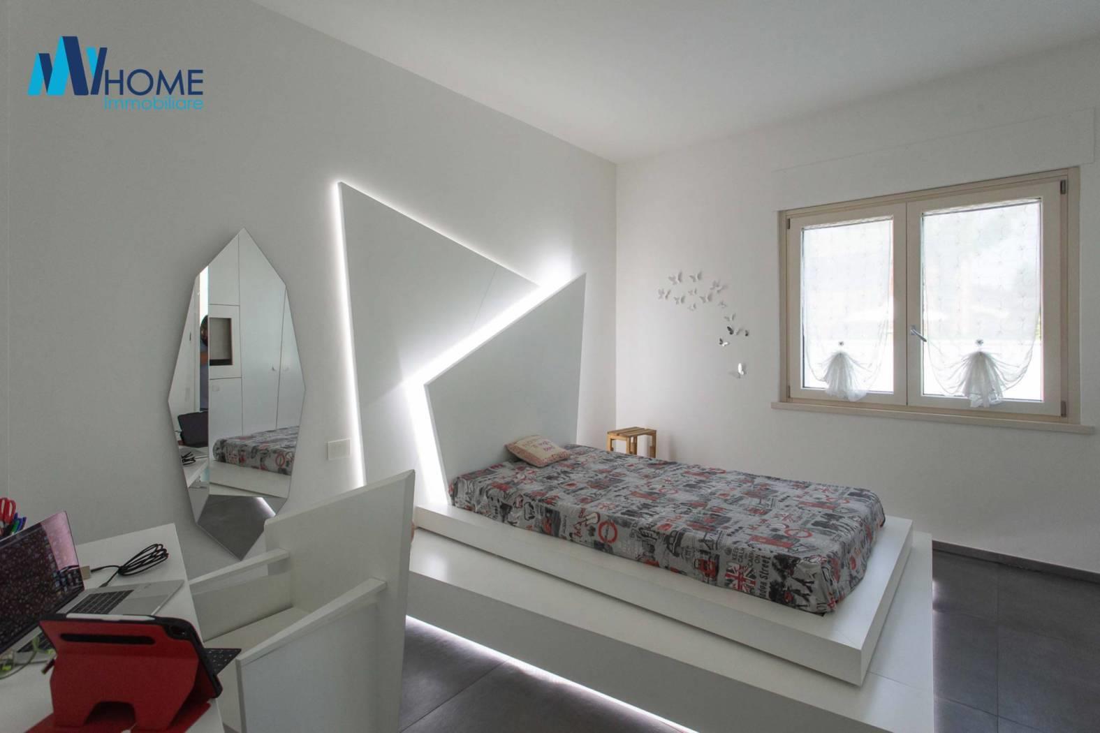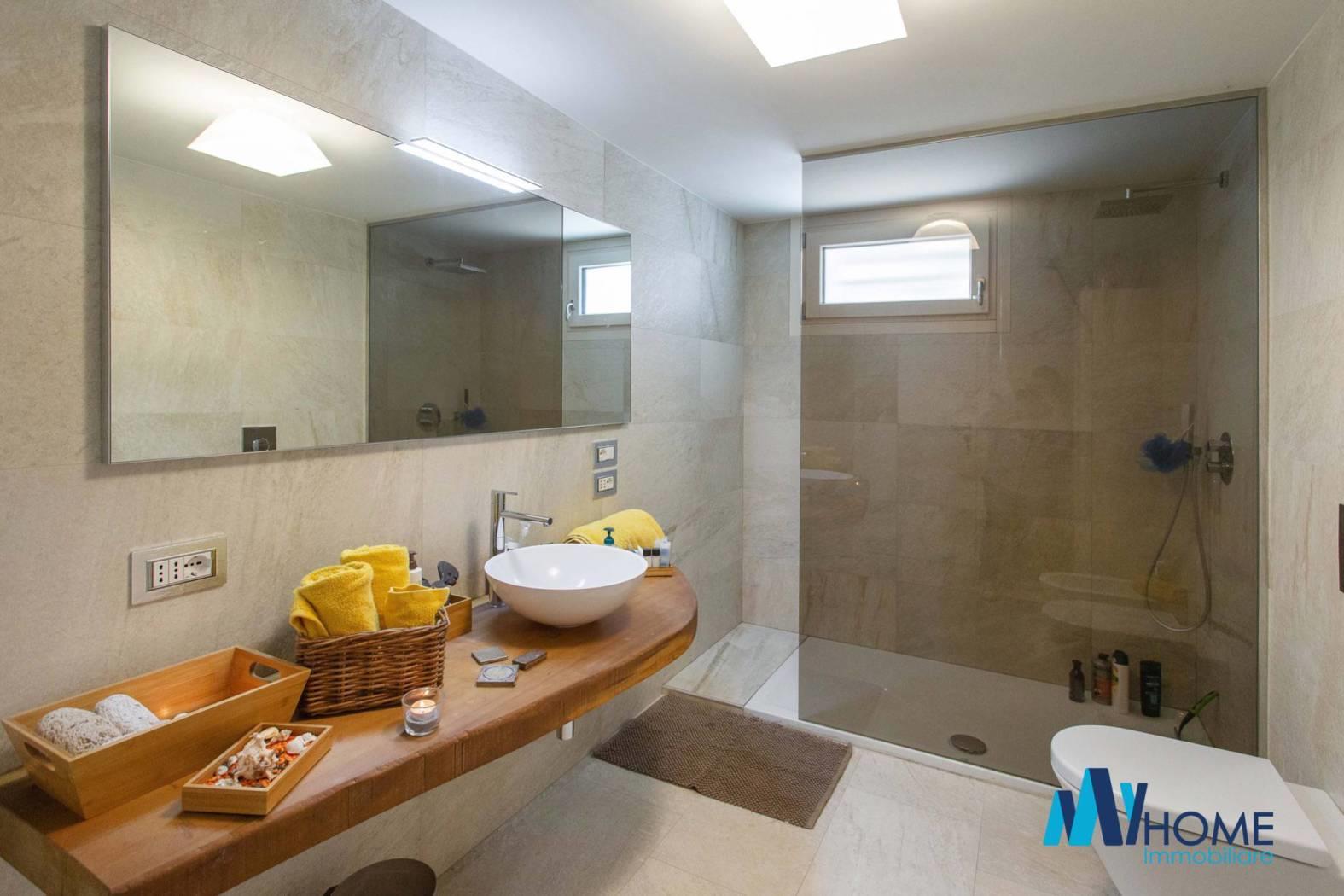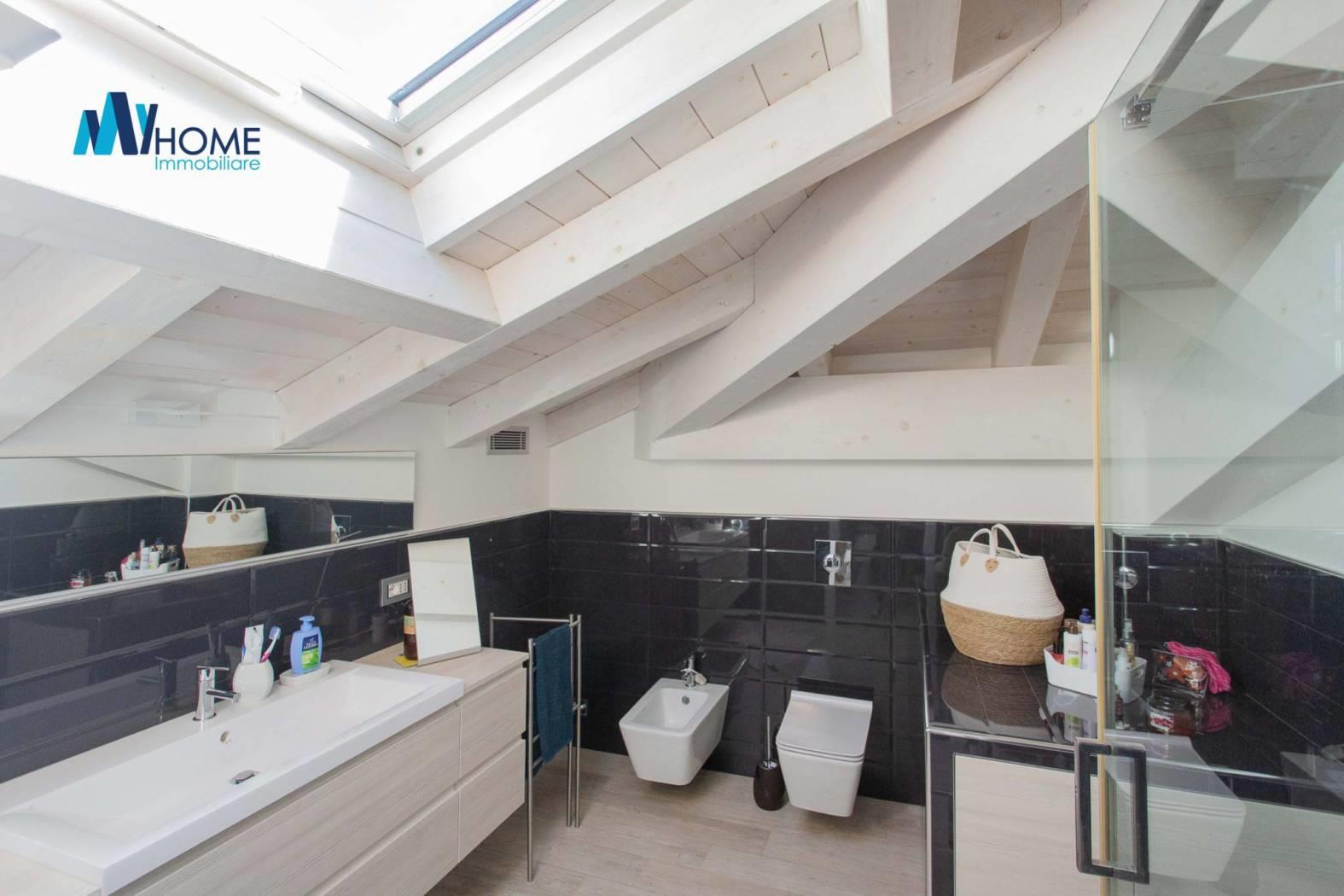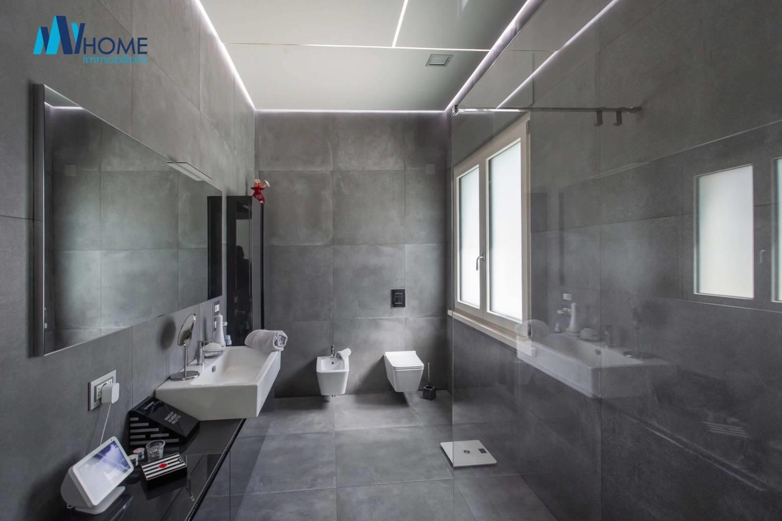 L'ingresso dell'immobile al piano terra, colpisce per l'ampio soggiorno living con delle finestre moderne per ammirare il giardino piantumato, la cucina è abitabile luminosa con penisola e ampia zona pranzo, il disimpegno ci porta nella zona notte dove troviamo le due camere matrimoniali, una con cabina armadio e due splendidi bagni con doccia doppia e giochi di luce oltre a delle finiture di alto pregio. La scala interna è in legno e di designer molto ampia fa da cornice al piano sottotetto con travi moderne a vista lamellari dove troviamo un locale open space con zona studio/ufficio, e zona relax cinema/tv oltre ad una camera riservata e un bagno. al piano seminterrato colpisce la luminosità degli ambienti dove troviamo una lavanderia, il locale tecnico, l'ampio box singolo con basculante motorizzata, un bagno finemente rifinito, la palestra con tutte le attrezzature oltre che la predisposizione per sauna e bagno turco, una camera per gli ospiti, oltre ad una splendida taverna che da sull'esterno dell'immobile dove troviamo un ampia zona piastrellata per passare delle giornate d'estate con amici e parenti a vista sulla splendida piscina 10 x 5 metri circondata dal giardino.