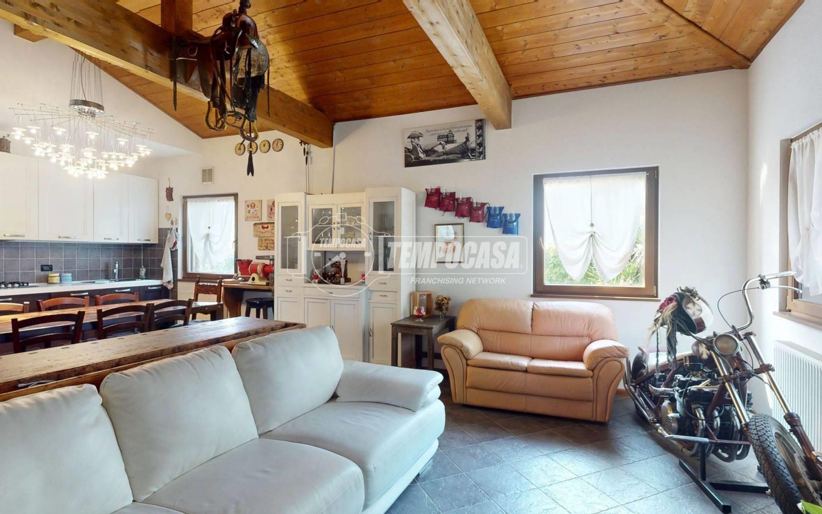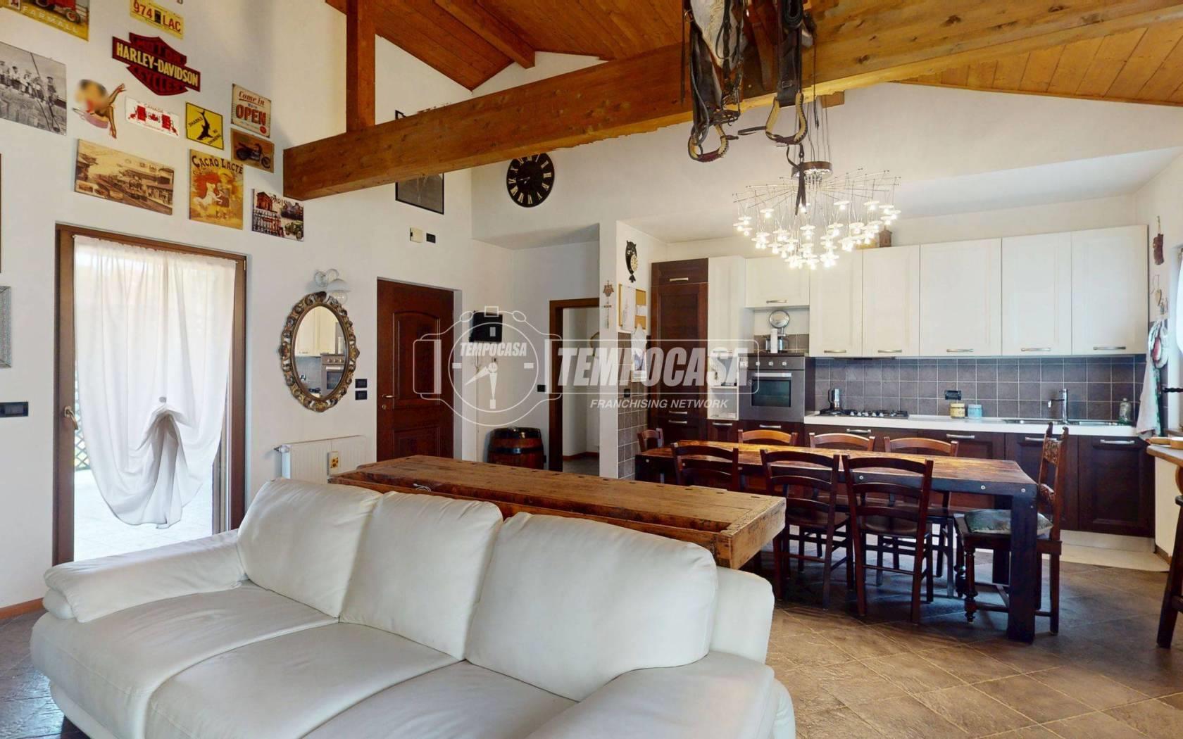 La soluzione, edificata nel 2011, si presenta in ottime condizioni, con finiture curate e materiali di qualità che uniscono comfort, eleganza e funzionalità. L’abitazione si apre su un luminoso soggiorno, caratterizzato da un camino in muratura che dona calore e accoglienza all’ambiente, rendendolo perfetto per momenti conviviali o serate rilassanti in famiglia. Adiacente al soggiorno si trova la cucina a vista, moderna e ben integrata nello spazio, pensata per coniugare praticità e convivialità.