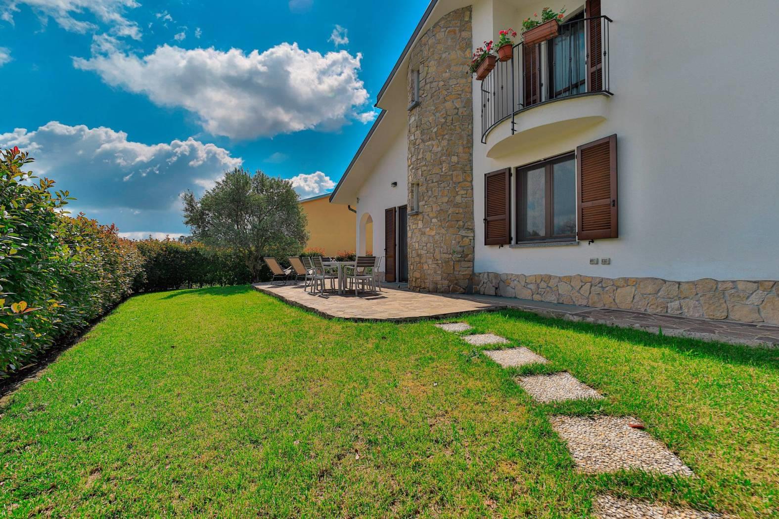Il giardino, che abbraccia la casa su tre lati per 300,00mq, è tenuto con grande cura: un angolo verde privato dove rilassarsi, far giocare i bambini o godersi una cena all’aperto. I due portici permettono di vivere l’esterno tutto l’anno, in un’atmosfera intima e riservata, grazie anche alla privacy data dal fatto che non vi siano altre case adiacenti per la presenza di un’ampia area verde comunale.