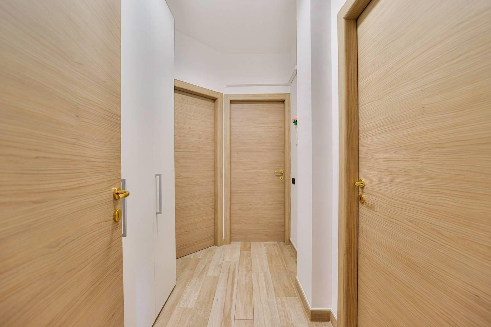 La vera chicca? La zona notte al piano: due ampie camere matrimoniali, una con bagno privato e una con una grande cabina armadio (nascente da due camerette, facilmente ri divisibili all’occorrenza), più un ulteriore bagno di servizio con doccia.