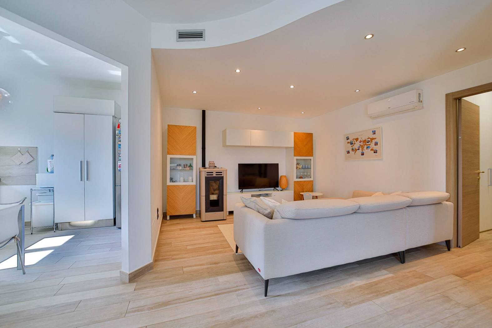 Al piano terra di 113,00mq – cuore della casa – troviamo una zona giorno luminosa e accogliente, con soggiorno dotato di stufa, zona pranzo e una cucina abitabile dalle dimensioni generose.