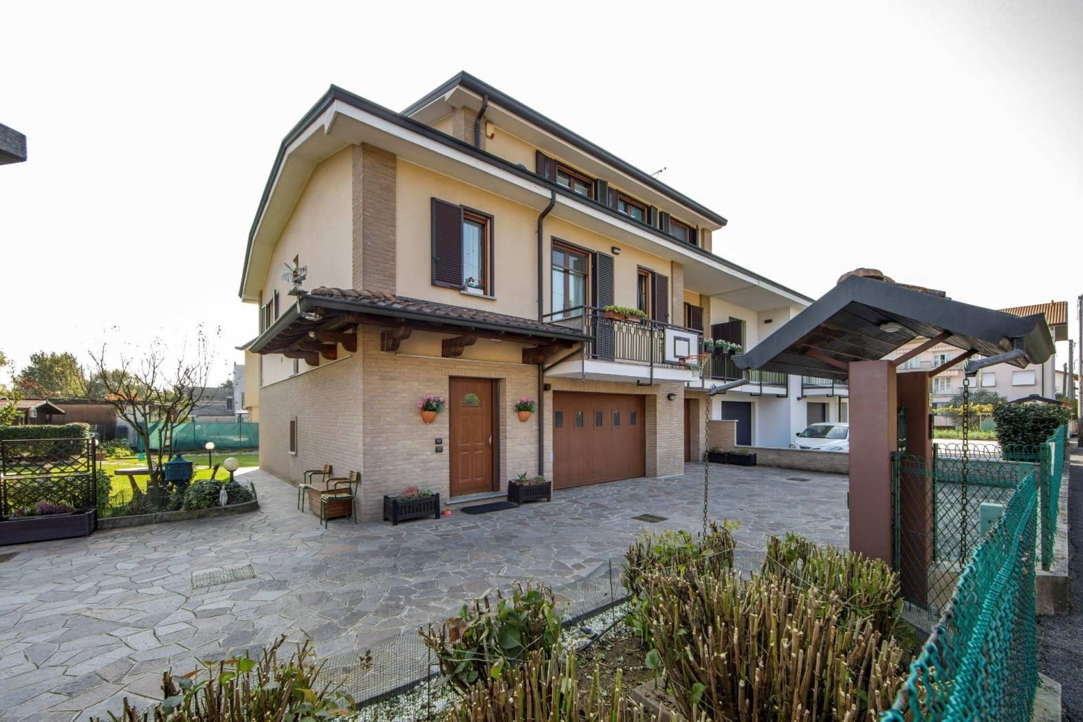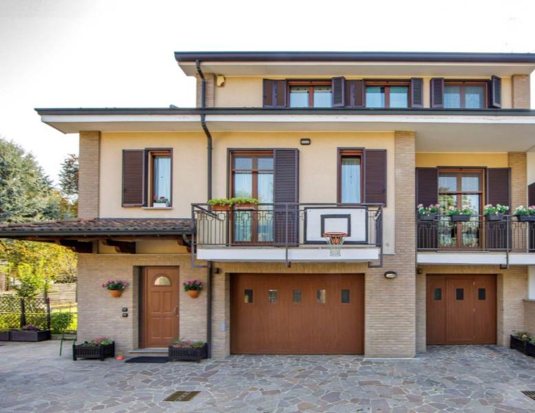 Domenico Tronca (Siacasa Immobiliare Srl) & Royal Immobili & Investimenti propongono in vendita un'elegante villa con mattoni faccia a vista, giardino esclusivo di 334 mq con due appartamenti indipendenti, ideale per due nuclei familiari. Piano Terra (69 mq) – Bilocale con: • Soggiorno affacciato su portico esposto a SUD • Cucina semi abitabile • Bagno finestrato • Camera matrimoniale Primo e Secondo Piano (5 locali su due livelli) • Ampio soggiorno con camino a 5 stelle (normativa Regione Lombardia) • Cucina abitabile con accesso a portico e balcone • 2 camere da letto con balcone • Bagno e lavanderia • Mansarda abitabile con TRAVI A VISTA: 3 camere, bagno, balcone e ripostiglio ✅ DOTAZIONI DI PREGIO: • Infissi in alluminio a taglio termico con vetri antisfondamento • Persiane in alluminio • Cappotto termo isolante • Riscaldamento a pavimento con caldaie a condensazione (2023) • Fotovoltaico 6,87 kW con batterie di accumulo da 16 kW • Climatizzazione, tende motorizzate, allarme, predisposizione TVCC • Addolcitore acque Giardino privato con casetta attrezzi e cisterna per la raccolta di acqua piovana e predisposizione irrigazione. BOX di 49 mq con doppio accesso elettrico con piazzale per parcheggio interno. Nessuna spesa condominiale Classe Energetica “ D “ - Eph 125,94 kWh/m²a - Libera al rogito – Soluzione unica nel suo genere per chi cerca privacy, qualità costruttiva e comfort moderno. Contattaci per info e visite!