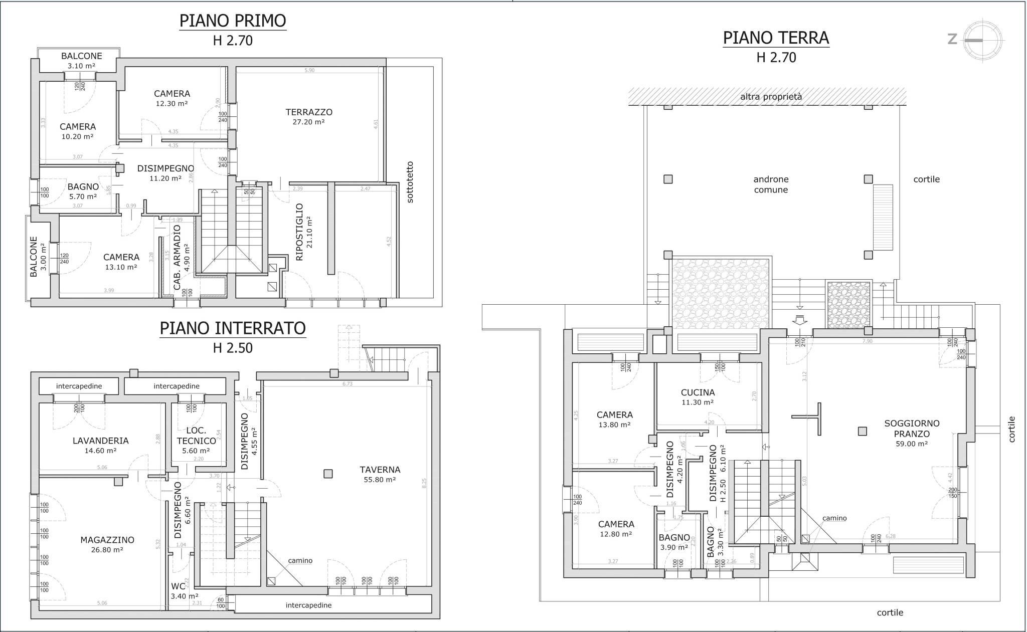 PIANO INTERRATO: taverna con camino, lavanderia, bagno finestrato, stanza jolly e locale tecnico.