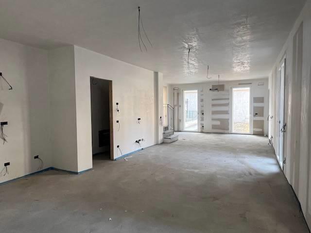 Composizione: al piano terra con ingresso indipendente, troviamo un soggiorno ampio, cucina, locale accessorio, bagno, lavanderia, e accesso diretto al giardinetto privato; al piano primo abbiamo 3 camere da letto, disimpegno, bagno, ripostiglio, balcone.