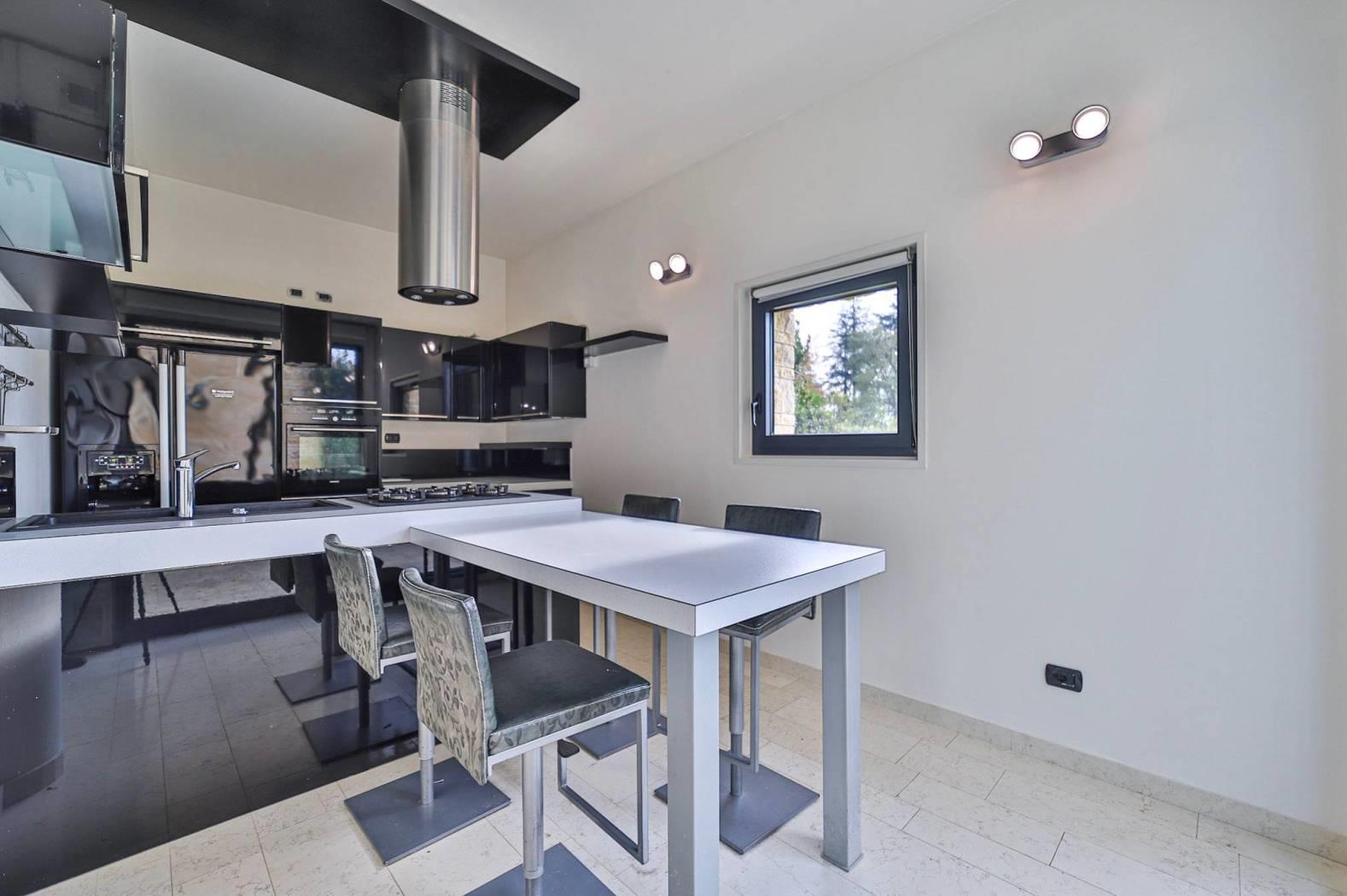 La casa è dotata di un comodo ascensore che collega tutti i livelli, garantendo praticità e accessibilità. A completare questa straordinaria villa, una spaziosa taverna perfettamente organizzata per il relax e la funzionalità: qui troviamo una palestra privata, una lavanderia comoda e ben attrezzata, e una cantina per la conservazione dei vini o lo stoccaggio di oggetti. Inoltre, la proprietà dispone di tre box auto interni, collegati direttamente alla casa per la massima praticità, oltre a posti auto coperti privati, ideali per accogliere ospiti e garantire ulteriore spazio di parcheggio. Gli interni sono curati con eleganza: la zona giorno e i bagni sono rivestiti in pregiato marmo bianco, mentre la zona notte è impreziosita da pavimenti in parquet che aggiungono calore e comfort. Gli infissi blindati garantiscono la massima sicurezza, mentre il sistema di riscaldamento autonomo, alimentato da una caldaia a condensazione, è integrato con riscaldamento a pavimento per una distribuzione ottimale del calore in tutti gli ambienti.