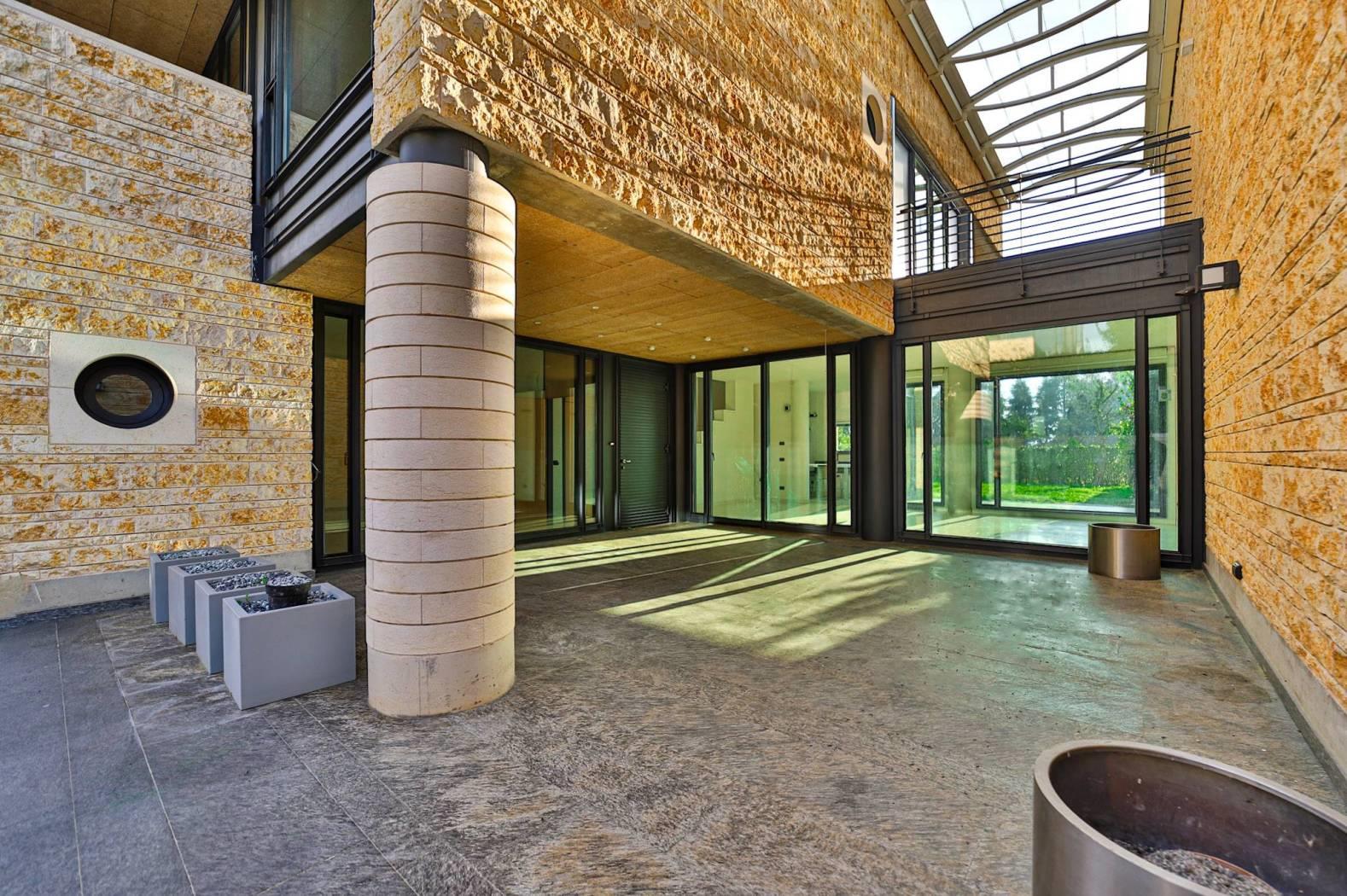 In vendita, nel cuore del suggestivo comune di Merate, in provincia di Lecco, una villa unica nel suo genere, progettata dall’architetto Mario Botta. Questa splendida villa si sviluppa su un elegante piano terra di 98,00mq, interamente vetrato per garantire una connessione armoniosa con il verde circostante. Il design ricercato e funzionale rende la casa un’estensione del giardino, inondando gli spazi interni di luce naturale e creando un continuum con l’esterno. Attraverso due ampi portici coperti di 65,00mq, si accede a un giardino d’ingresso e a un giardino retrostante, per una superficie complessiva di 240,00mq, offrendo la perfetta combinazione di privacy e natura.