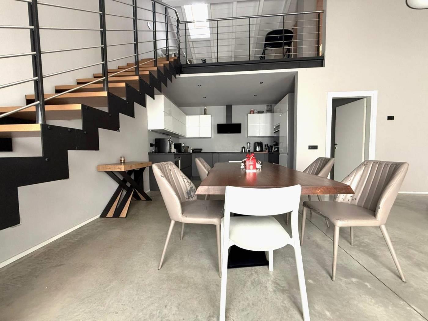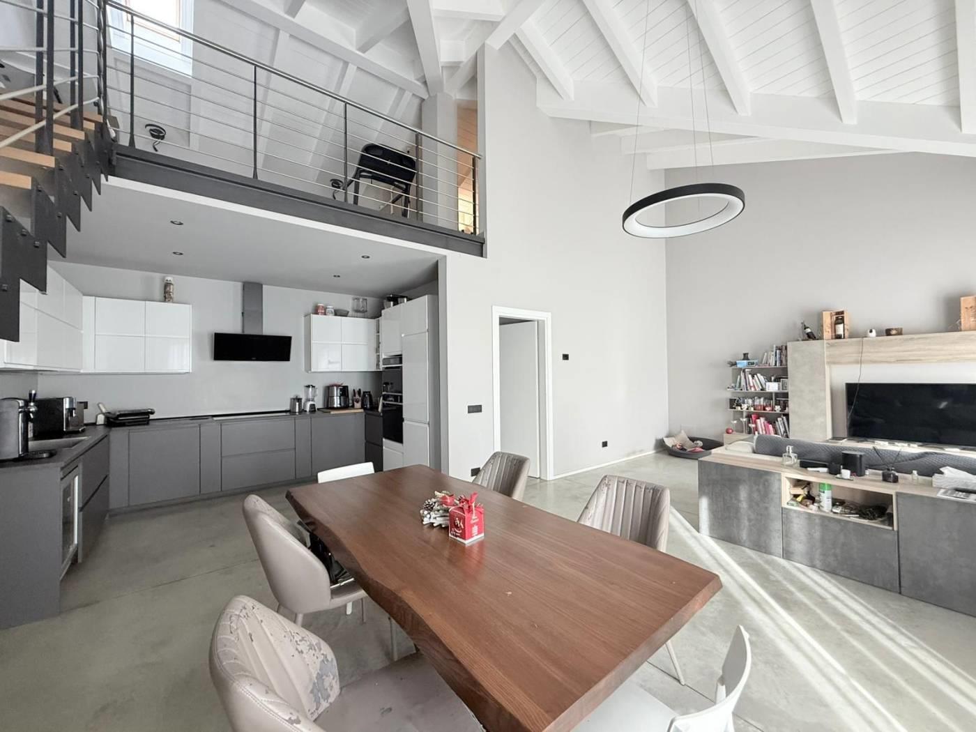 ingresso,soggiorno cucina a vista , disimpegno, camera matrimoniale con bagno dedicato, cameretta e bagno, completa la soluzione ampio soppalco di 40 mq.