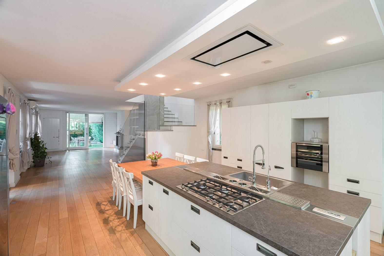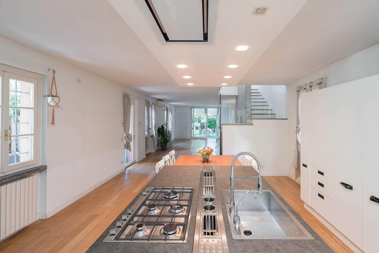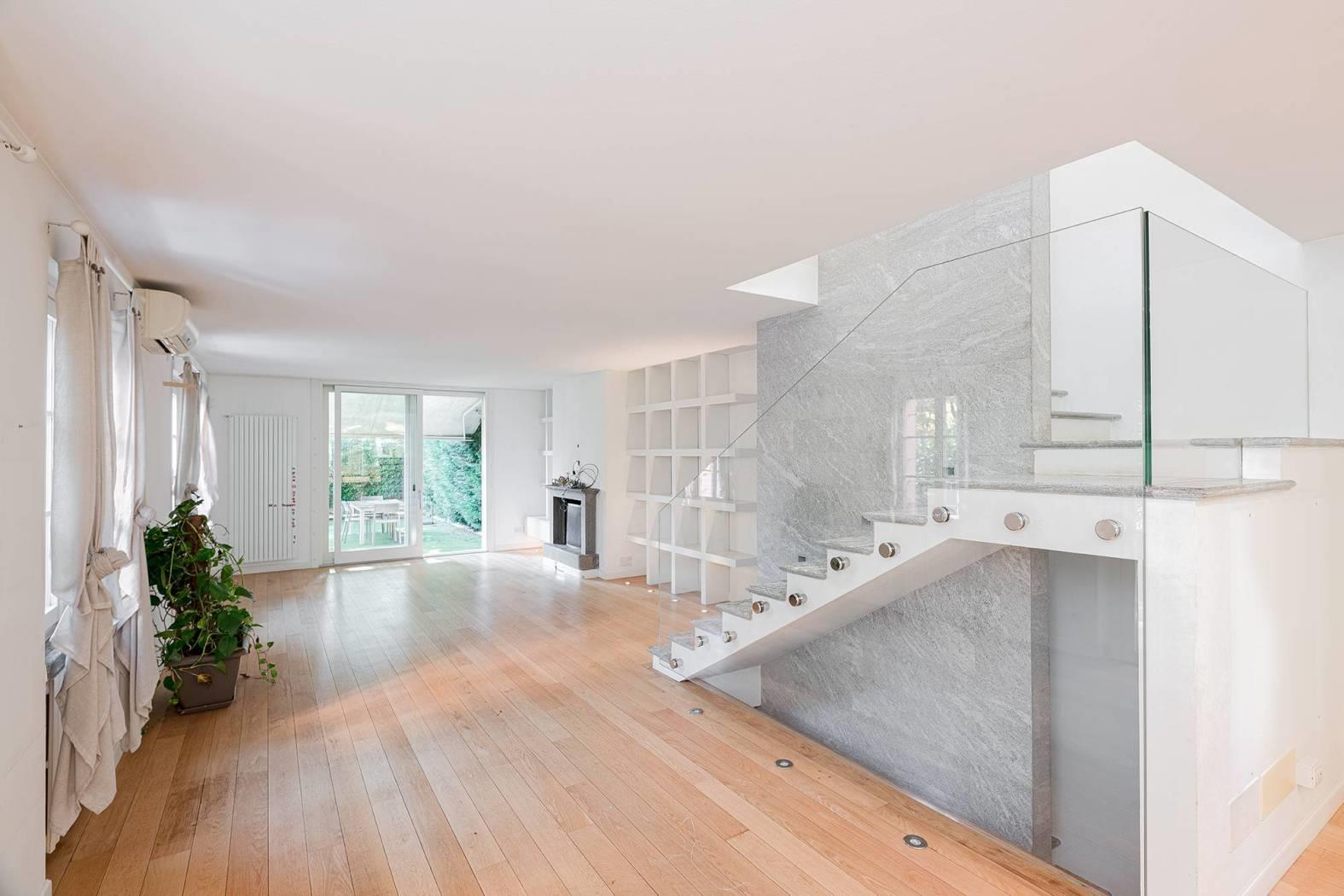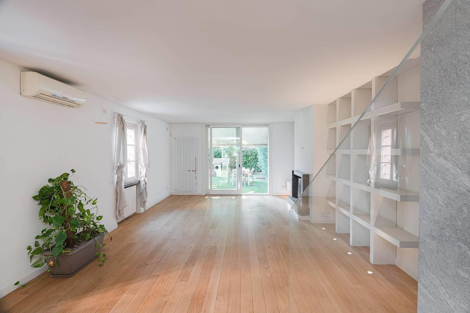 Monza Parco / Musicisti - in elegante e riservato contesto condominiale di sole cinque unità, proponiamo in vendita villa singola con area esterna ad uso esclusivo. Disposta su due livelli oltre piano interrato, è composta da ampio open space al piano terra, zona notte al piano primo e taverna con locali accessori al piano interrato; il tutto collegato da comoda scala interna a vista. La zona living al piano terra è un unico grande spazio composto dal soggiorno e dalla grande cucina a vista dotata di arredi e di isola centrale; le numerose finestre, su tre lati del perimetro, creano una calda atmosfera grazie alla luce naturale. Una spaziosa veranda, in continuità con la cucina, conduce alla porzione del giardino sul retro. L’area esterna è accessibile da tutte le zone del piano terra. Al piano primo troviamo la camera matrimoniale con cabina armadio a vista e un bagno en-suite dotato di doppia doccia. Due grandi portefinestre garantiscono una splendida luce sin dalle prime ore del mattino. Presenti altre due camere ed un ulteriore bagno con vasca. Al piano interrato, ampia taverna con locali accessori e lavanderia, ideale per locale hobby, zona studio, area cinema etc. Finiture di pregio, pavimentazione in parquet, porte Rimadesio e dettagli esterni come i mattoncini a vista che richiamano agli antichi fienili; gli spazi verdi del complesso e la posizione interna consentono un completo isolamento dal contesto urbano. L'abitazione è stata completamente ristrutturata nel 2009; è termoautonoma e dotata di aria condizionata. Parzialmente arredata, se gradito. Completa la proprietà un'autorimessa tripla al piano interrato (valore addizionale pari a € 85.000). Mandato in co-esclusiva con What&If