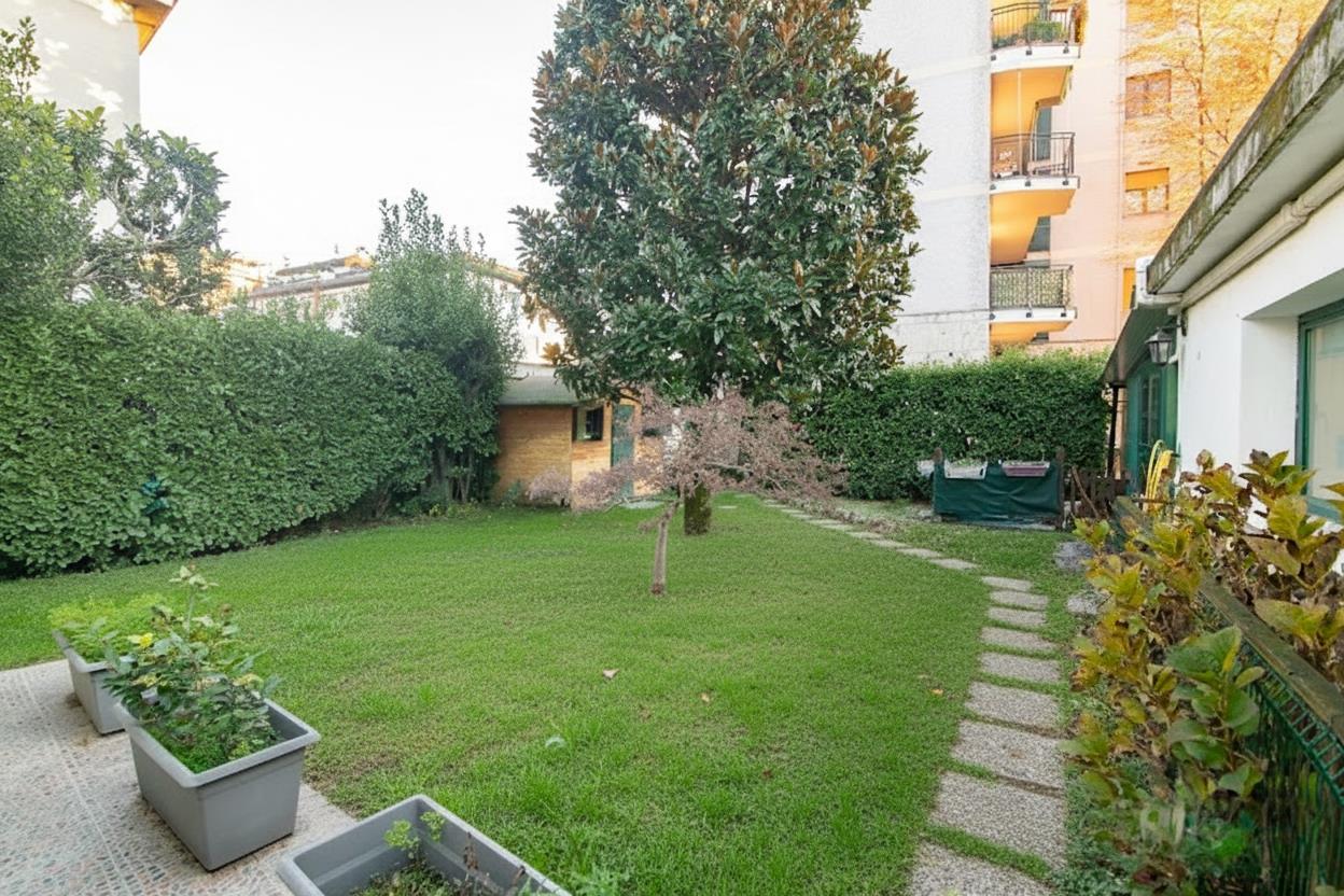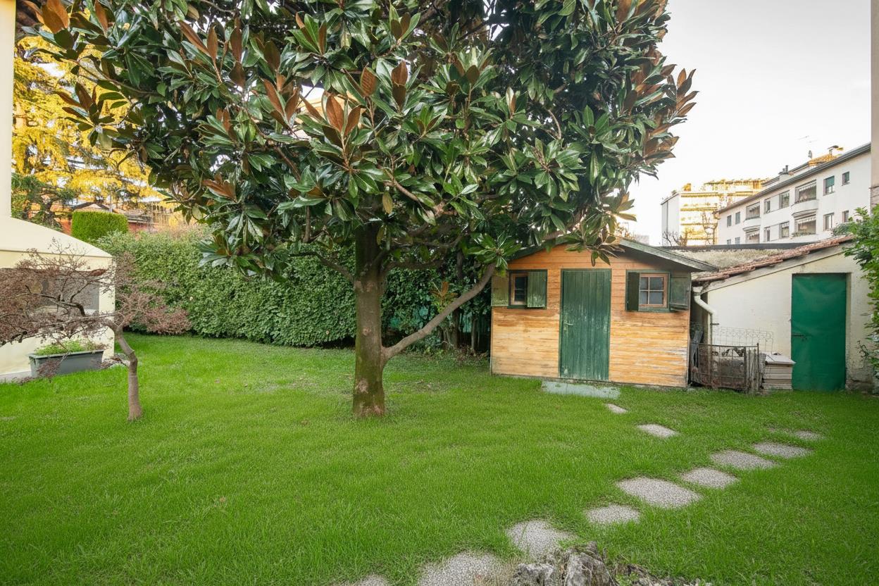 Il giardino privato di 330 mq circonda la casa, offrendo un’oasi di riservatezza. Il portico esterno con gazebo rappresenta lo spazio perfetto per cene all’aperto, mentre il corpo staccato ospita un box/locale studio, ideale per lo smart working, e una comoda lavanderia, offrendo comunque la possibilità di parcheggiare una vettura al coperto, coniugando così praticità lavorativa e funzionalità di parcheggio.