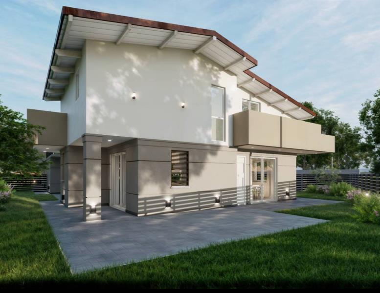 Qui proponiamo una villa di testa disposta su due livelli abitativi per un totale di 140 mq suddivisa in: al piano terra ampio soggiorno, cucina abitabile, disimpegno, bagno, locale tecnico e box doppio in larghezza quest'ultimi direttamente collegati oltre a giardino con ampi spazi pavimentati, coperti e attrezzati. Al piano primo camera matrimoniale con bagno dedicato, due ampie cameretta con secondo bagno, da sottolineare l'accesso a terrazzo in parte coperto e attrezzato al quale si accede anche tramite scala esterna dal giardino.